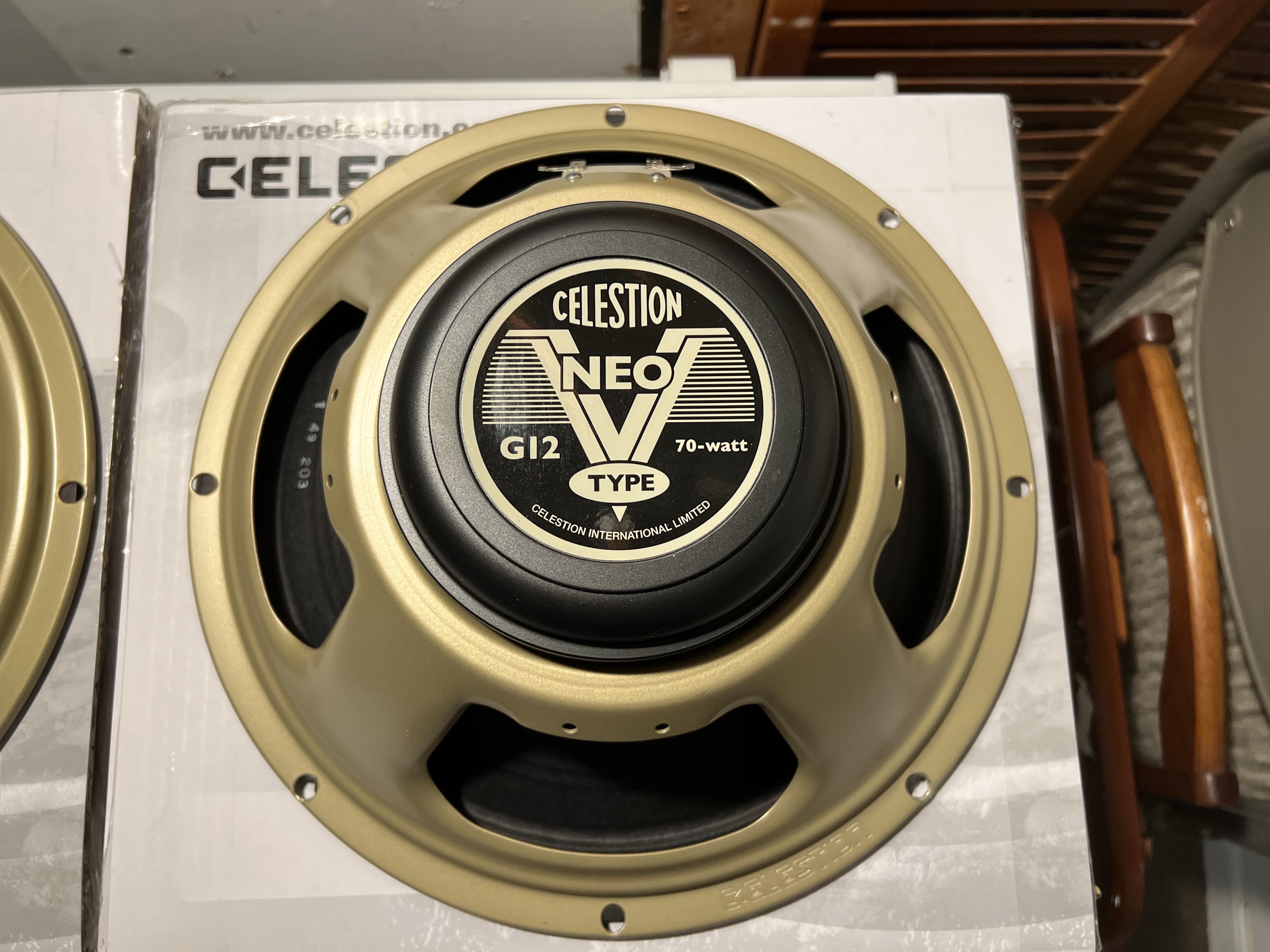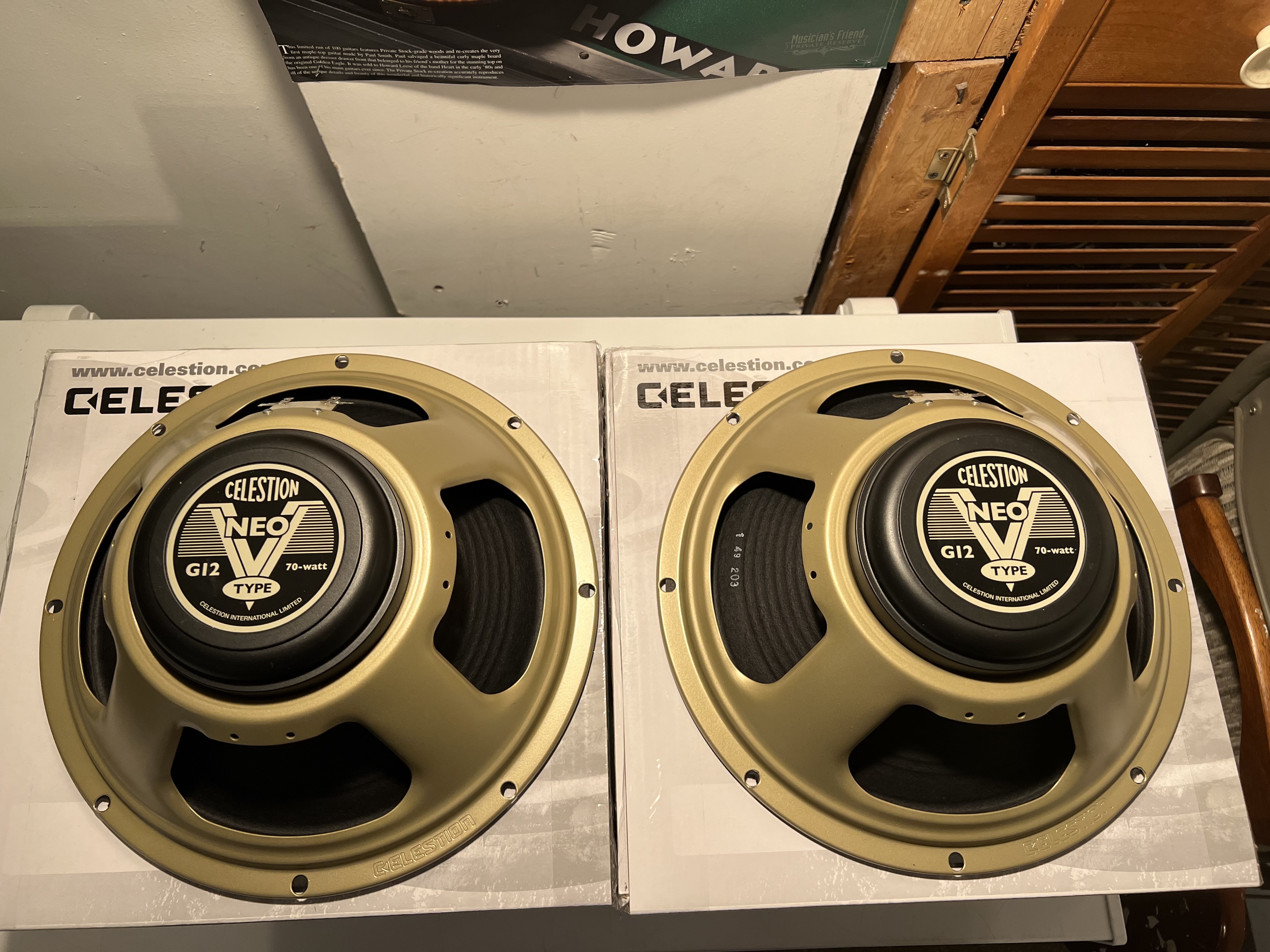 Up for grabs are these two Neo V-type speakers 8ohm ..... This is a new speaker celestion released recently. I bought these from musicians friend and tried them briefly. I actually really like these speakers but went a different route.