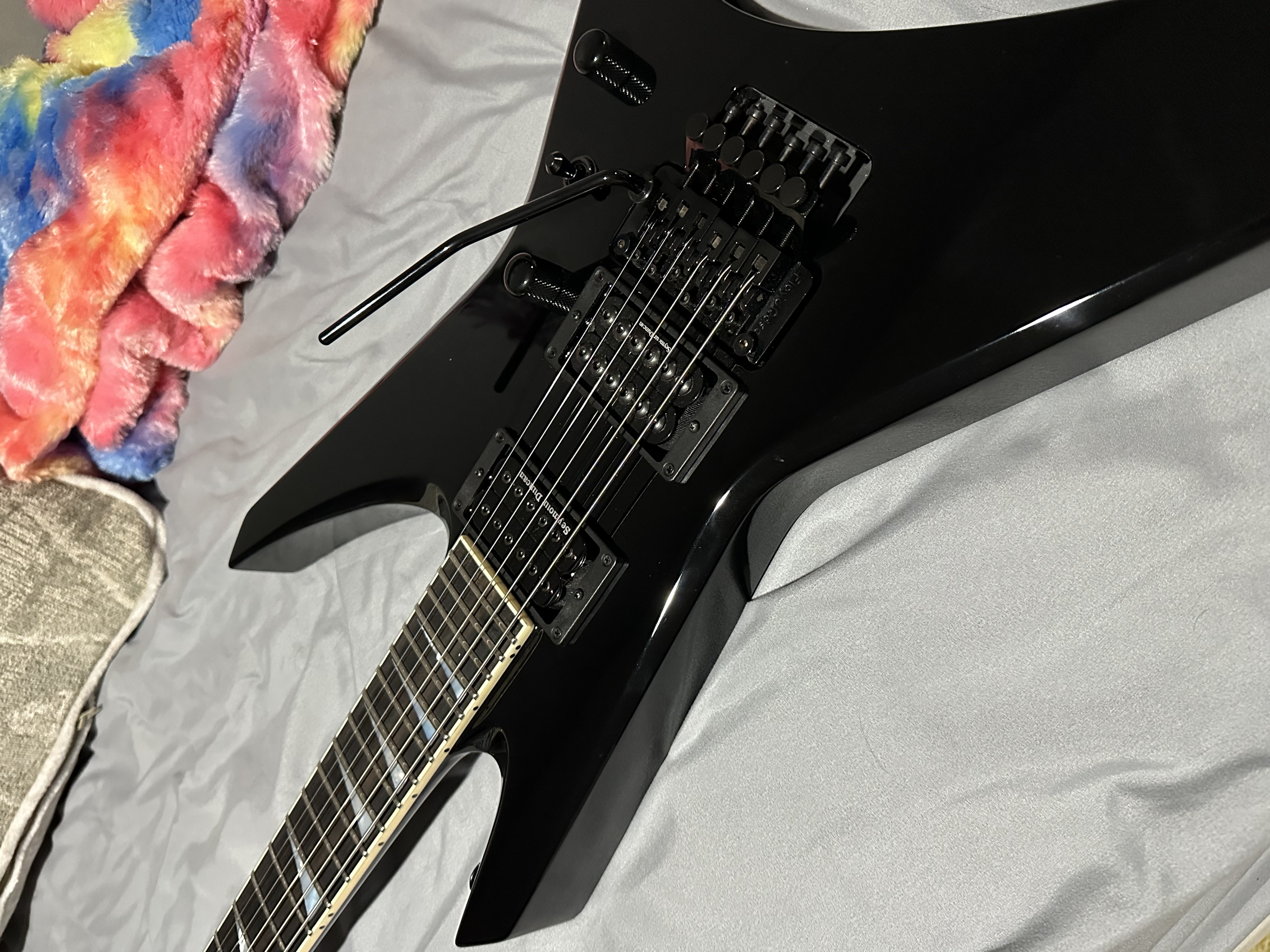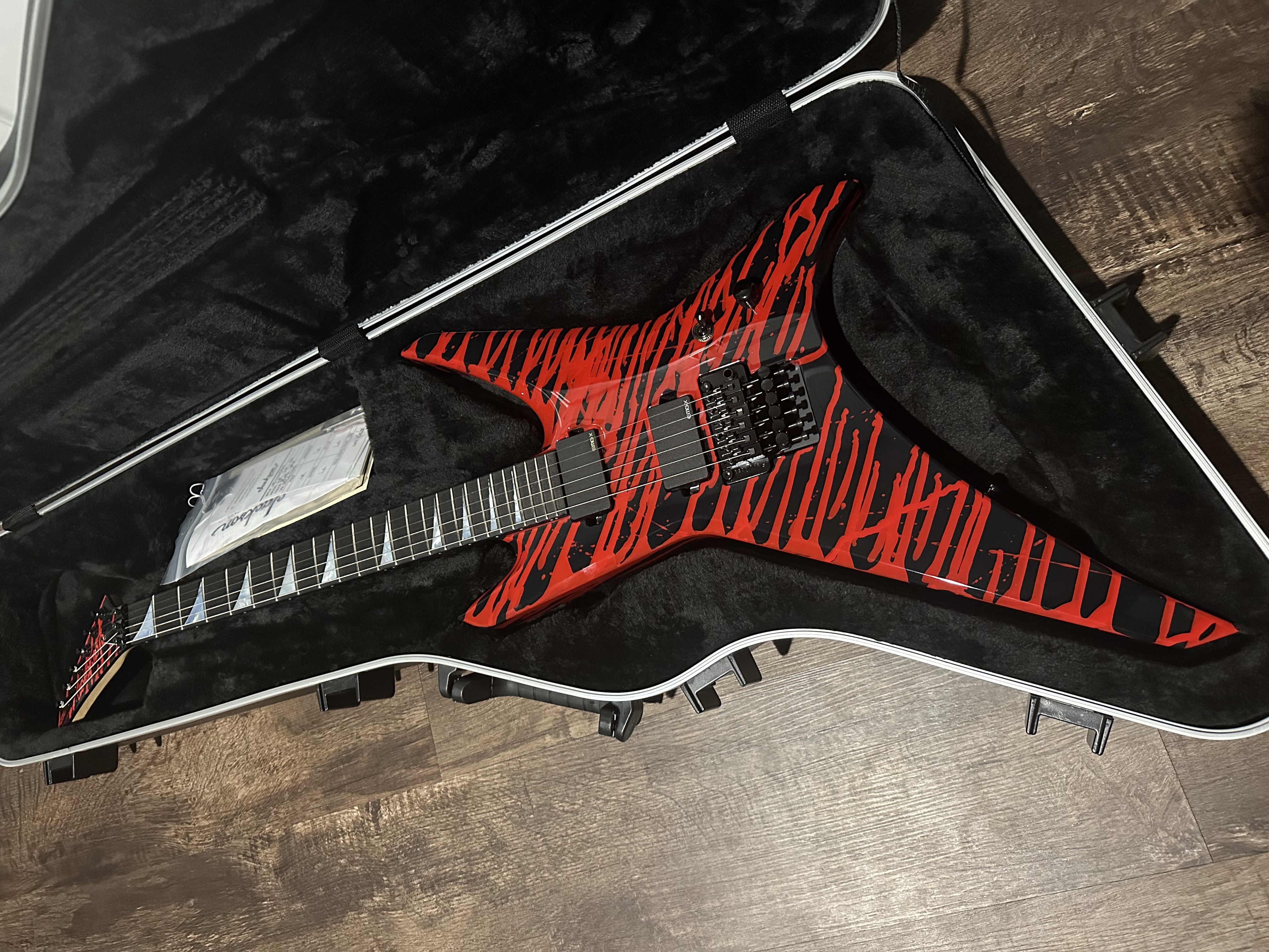 Great condition. One ding out of one wing pictured. Purchased new from chondro guitars this year. Selling to fund a custom shop that came up. Set up in A# cannibal corpse tuning. This thing rips.
