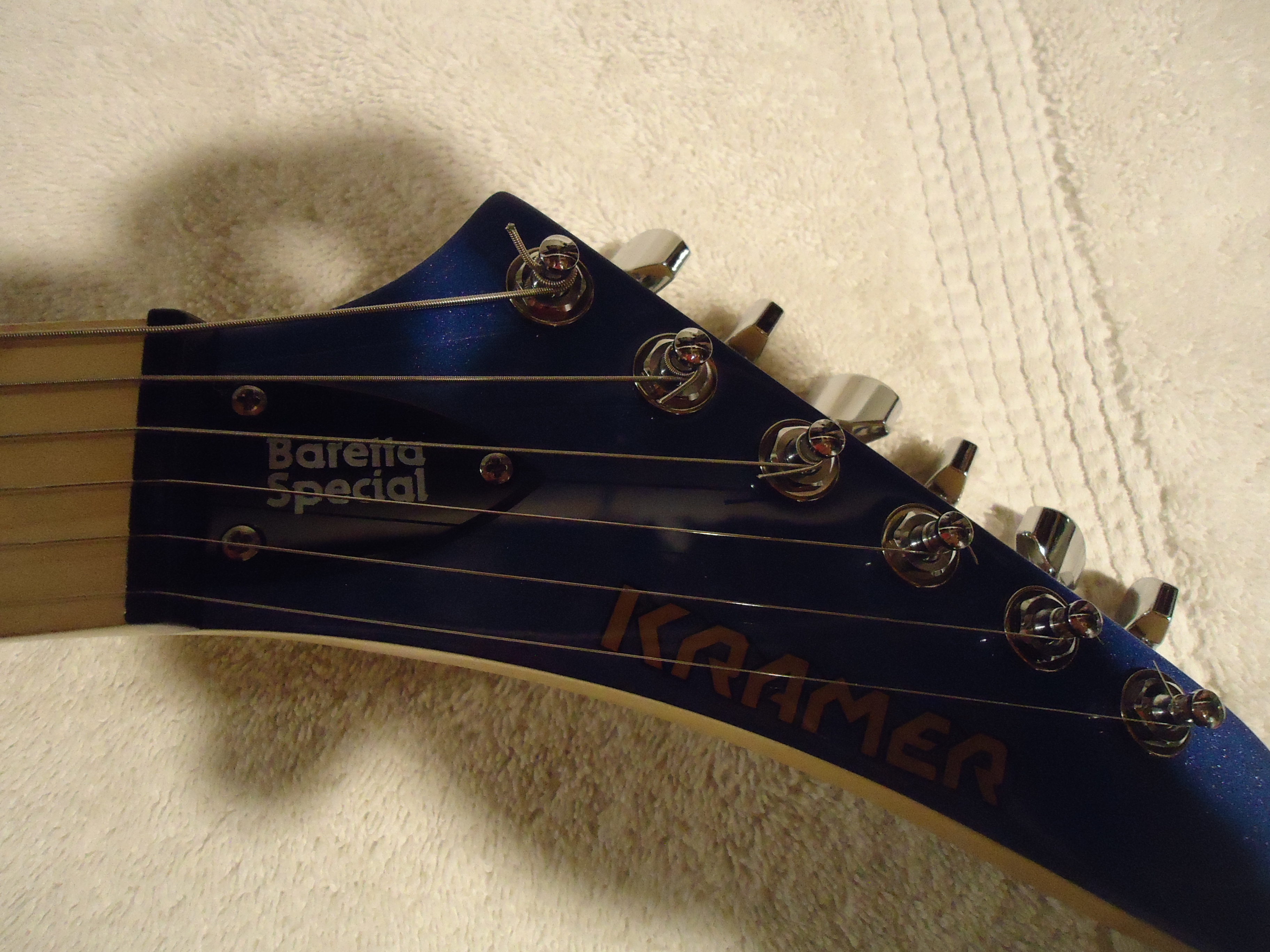ATTENTION SHREDDERS !! Up for sale is a candy blue Kramer Beretta Special . Yeah --I know they're 179-199 new how good can they be ??? They're excellent and this one comes with Gotoh tuners, EVH pickup , and a brass block . It plays and sounds like a million bucks . I have to be crazy for selling it but I bought for a project guitar and I'm not doing projects anymore . That and the fact I'm having elbow surgery might keep my playing on the back burner .Besides being completely playable you may want to buy it just for the parts !!!! It comes with all the original parts but I can't seem to find the trem bar and I don't have a gig bag but it will be packed well. I noticed in the pics the finish looks splotchy but it is perfect .Sold Paypal F&F shipped !!! Not interested in trades .