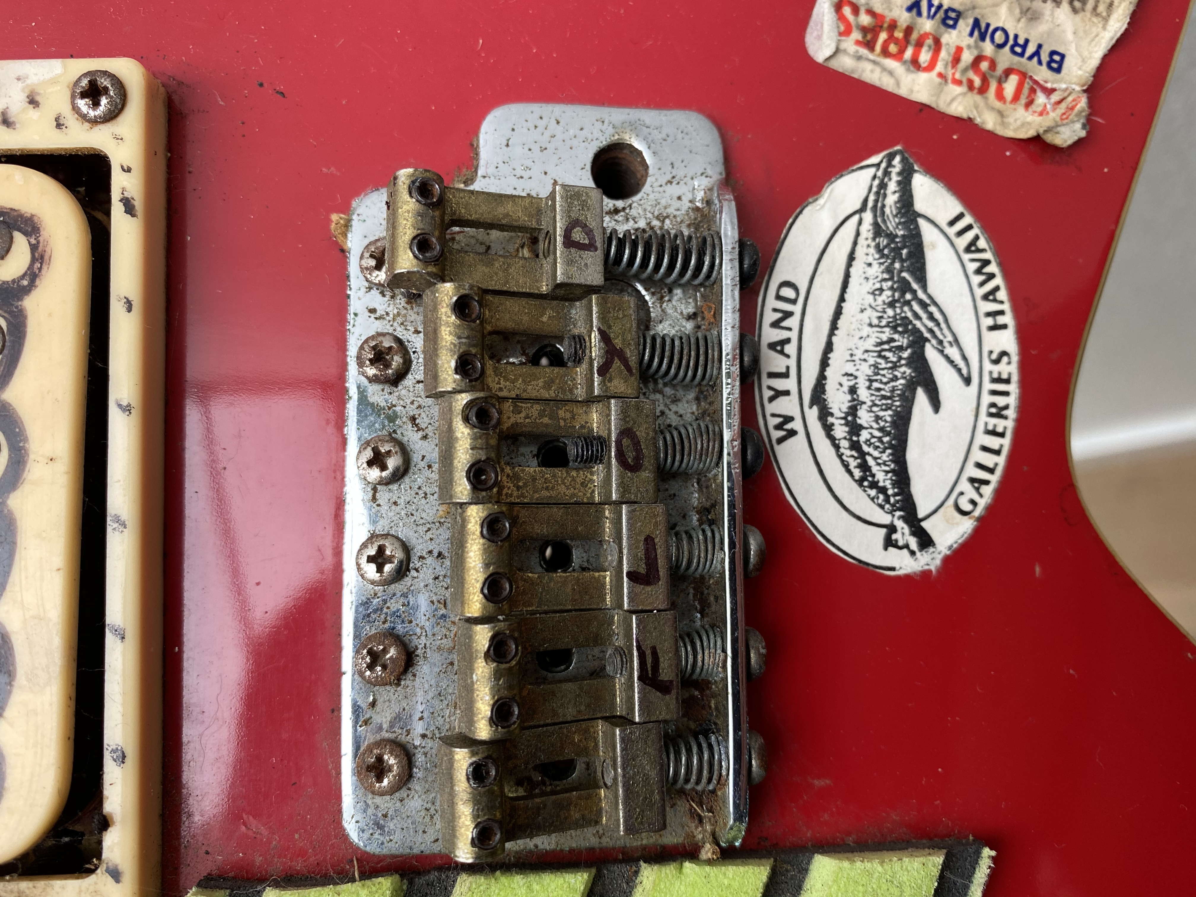 Surgeon holds this beauty captive and cuts off her arms and legs so she cant split......that's basically what was done here, Star Points were cutoff so that the guitar would fit in my bag during a Fiji / Australia / Bali surf trip.... @Ventura get in here and buy this piece of surf trip History