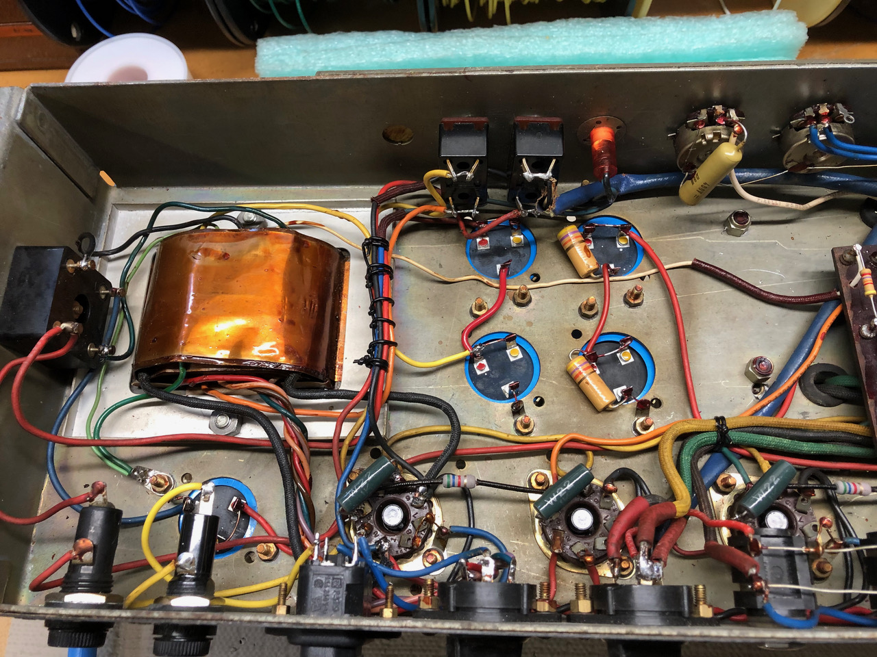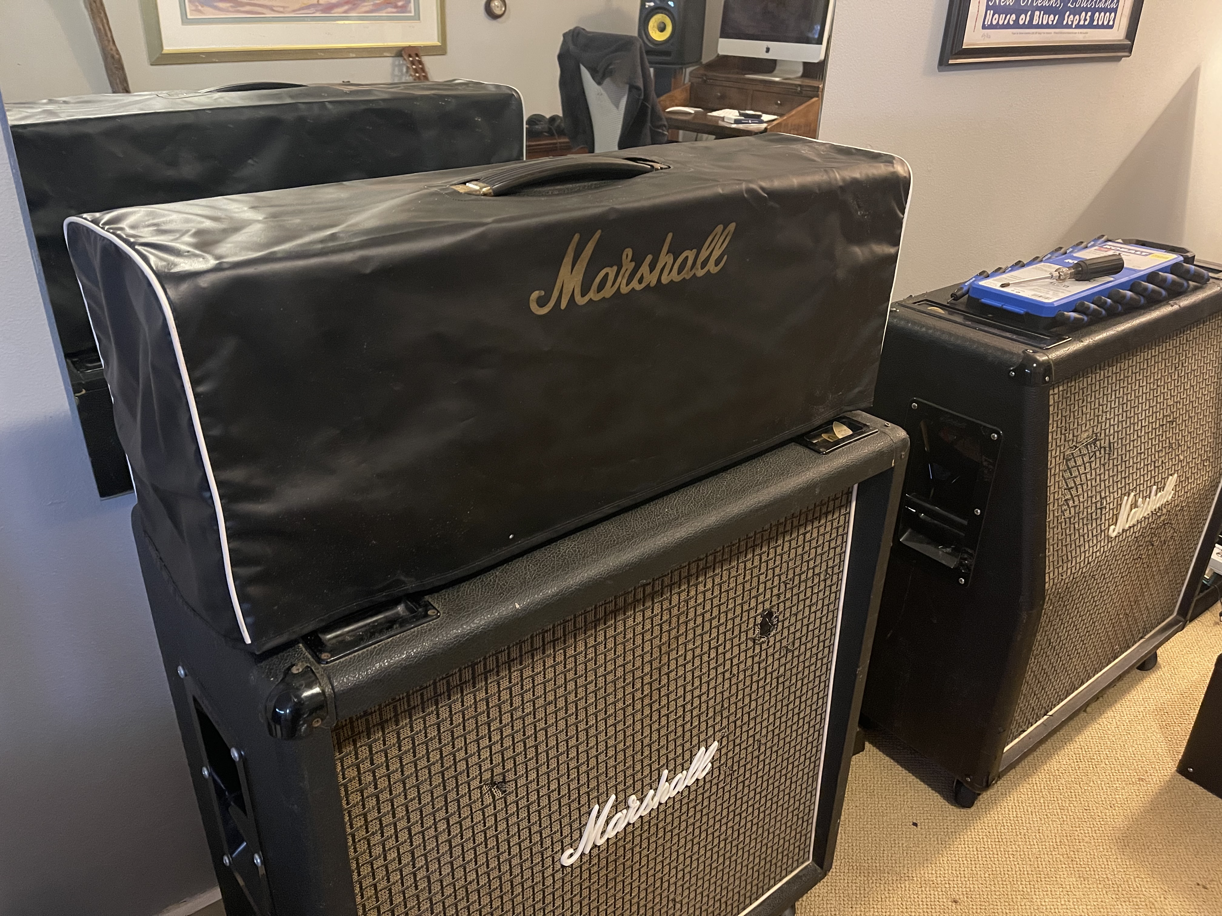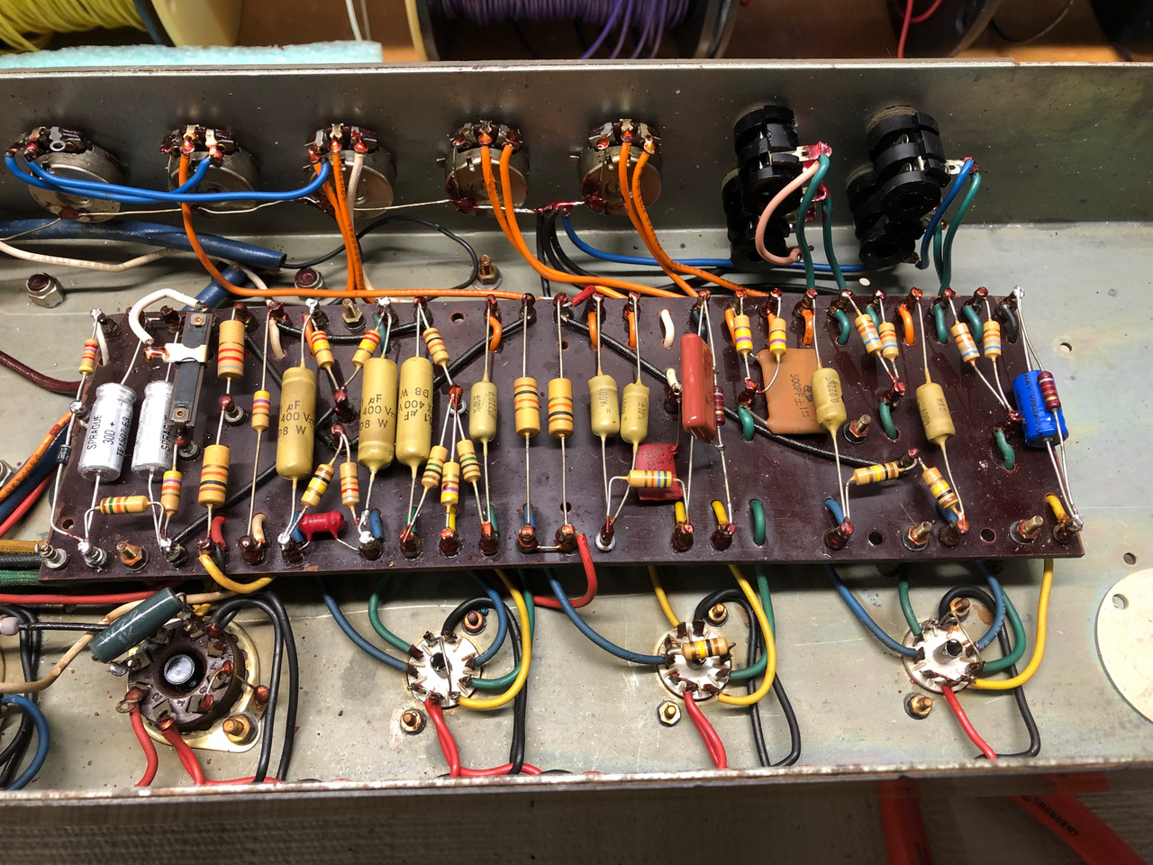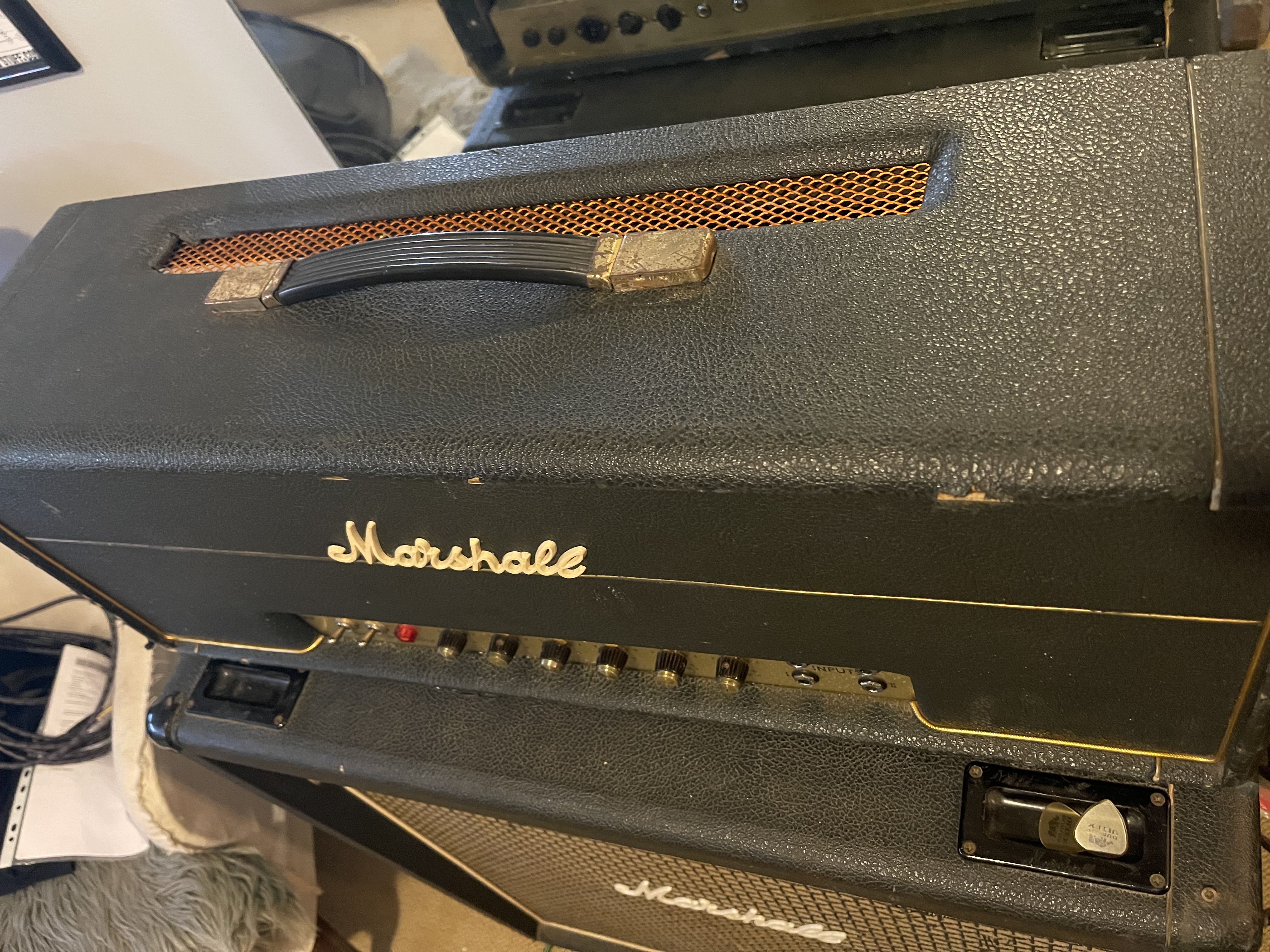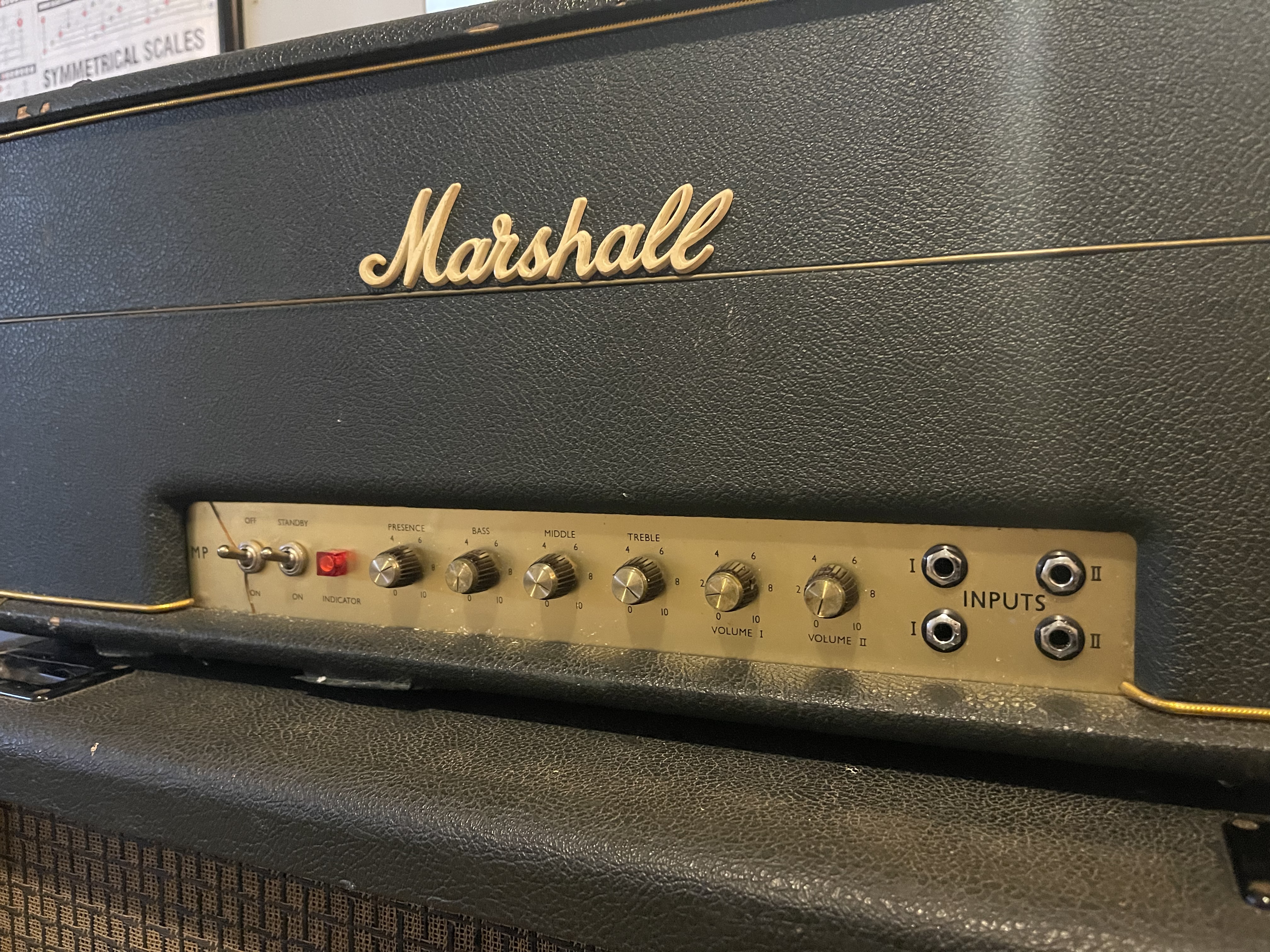 -Early ‘69 Plexi Panel Marshall Superbass, Drake transformers, original circuit. Brand new tubes, freshly recapped. Completely gone through by plexi Wizard Greg Germino of Germino amplification, who measured and tested every component. Several resistors that had drifted out of spec were replaced with era correct NOS components. Fit as a fiddle. Amazing overdrive at 5.5 on the volume. Thunderous rock and roll tone of the gods past that! Roll back the volume on your guitar for some of the best cleans on the planet. AC/DC, Zeppelin, Hendrix and beyond! $6,950 SOLD