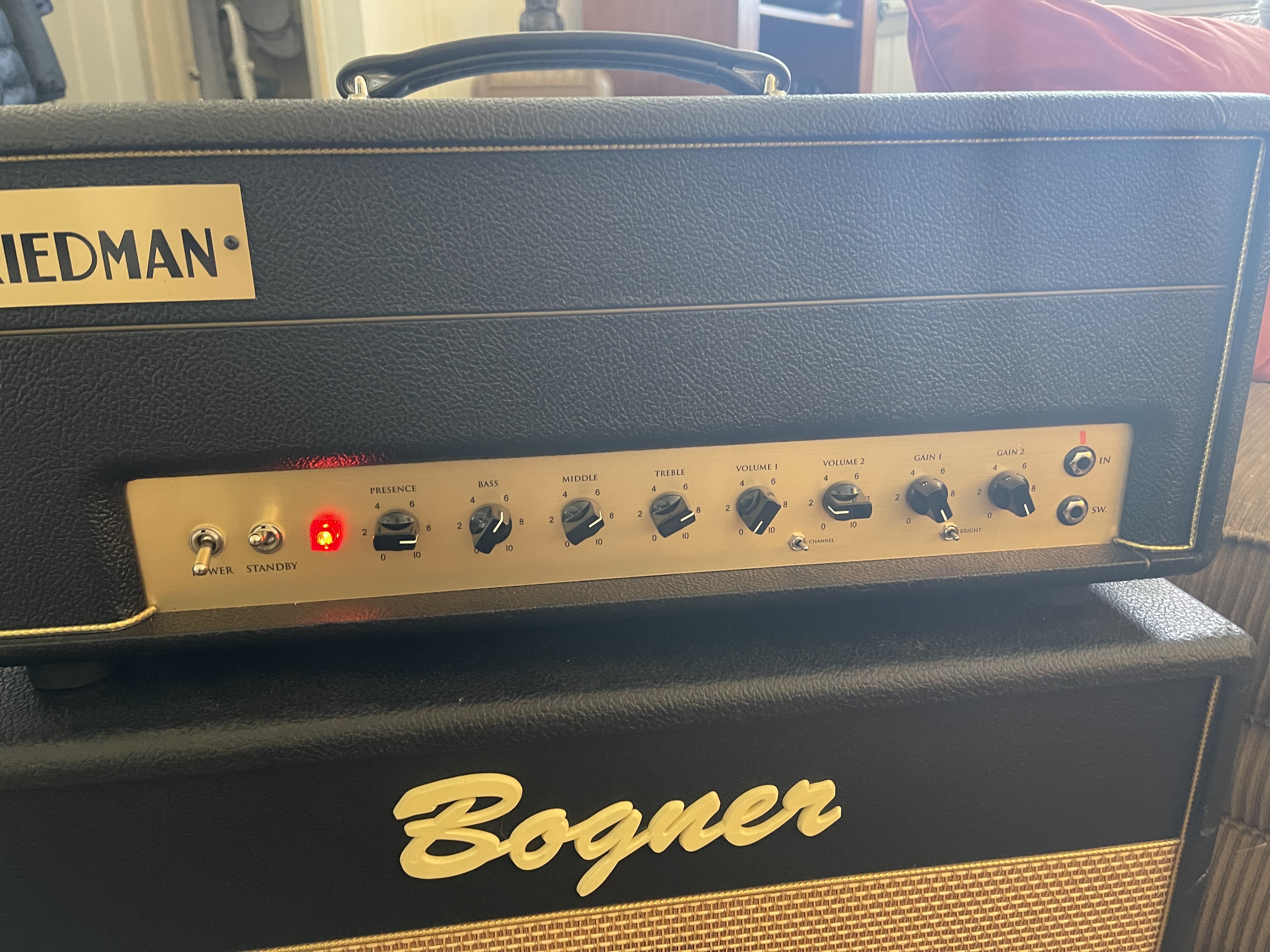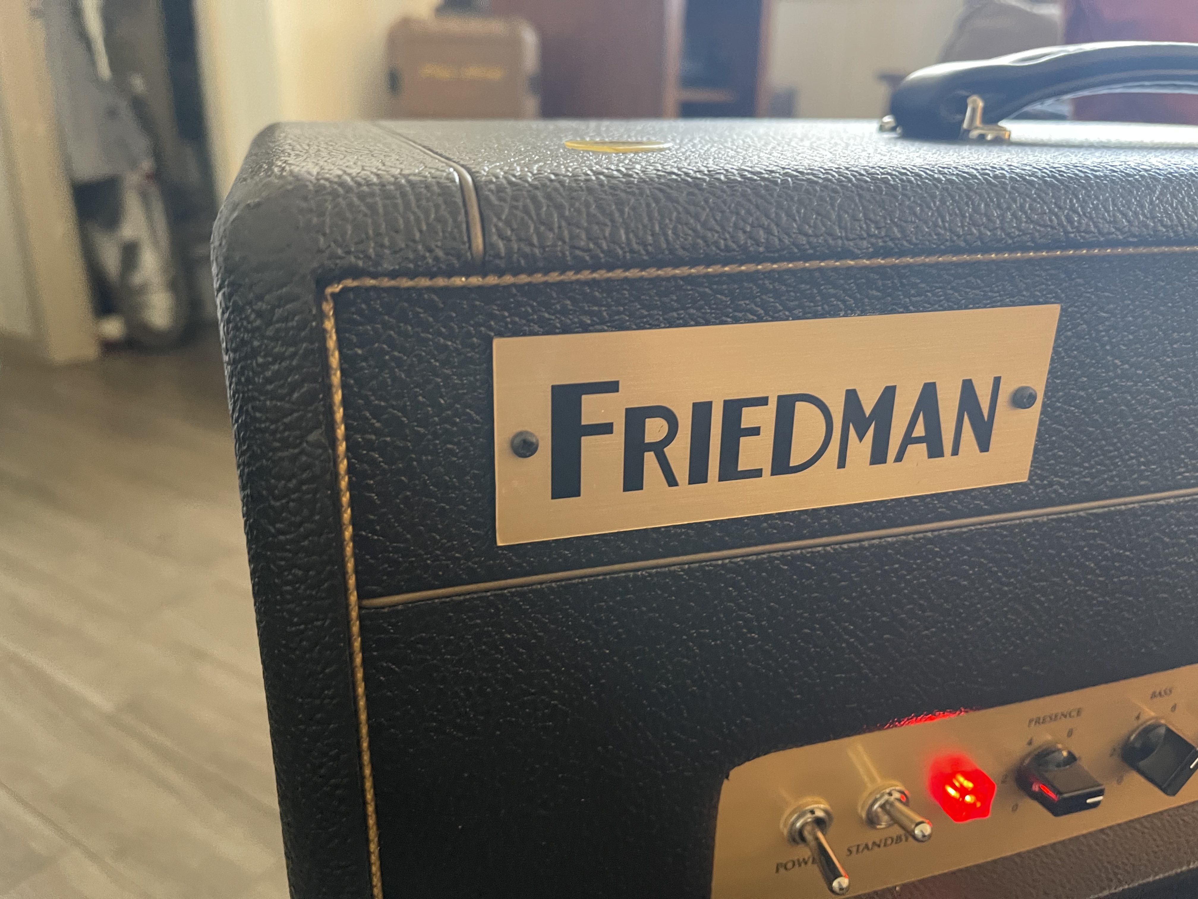 -Friedman Smallbox 50, excellent modded plexi tones. Brand new tubes and tech inspected. Small paint markings over the input jack and FX loop jacks by prior owner. Couple small scuffs on the tolex. Later version with the smaller head shell and upgraded capacitors. Heyboer transformers. $2,395 SOLD