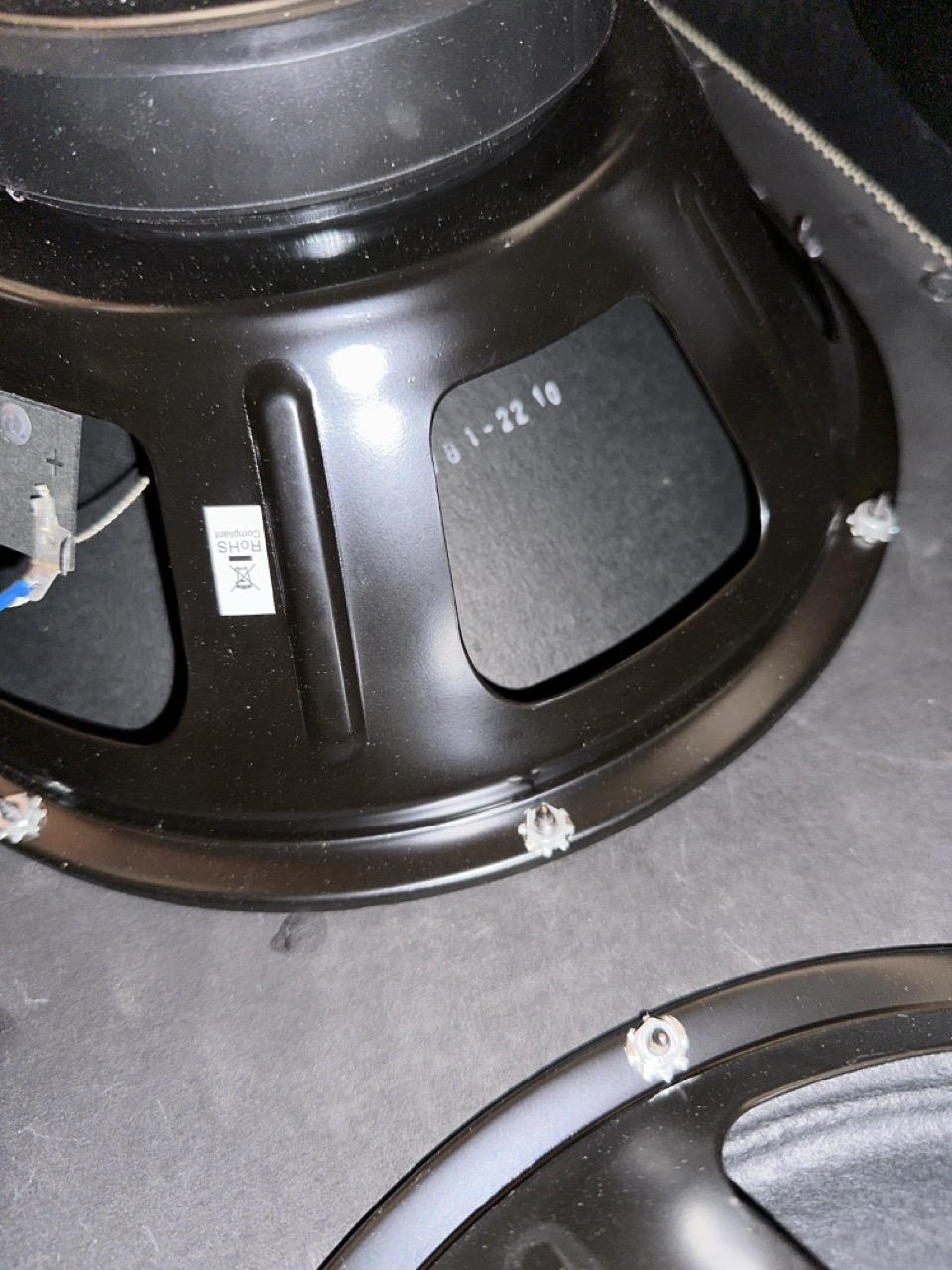 First up is a Hi-Tone 4121 with Hi-Tone DR-F speakers. A really great Hiwatt replica cab. Some nicks in the tolex, but in good shape. Of note, speakers have no sticker on the back, but have the codes to confirm they are DR-Fs. 16 Ohms. $400 ($100 Unloaded) [SOLD]