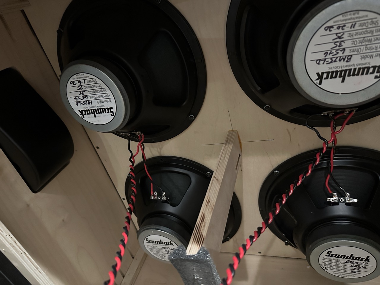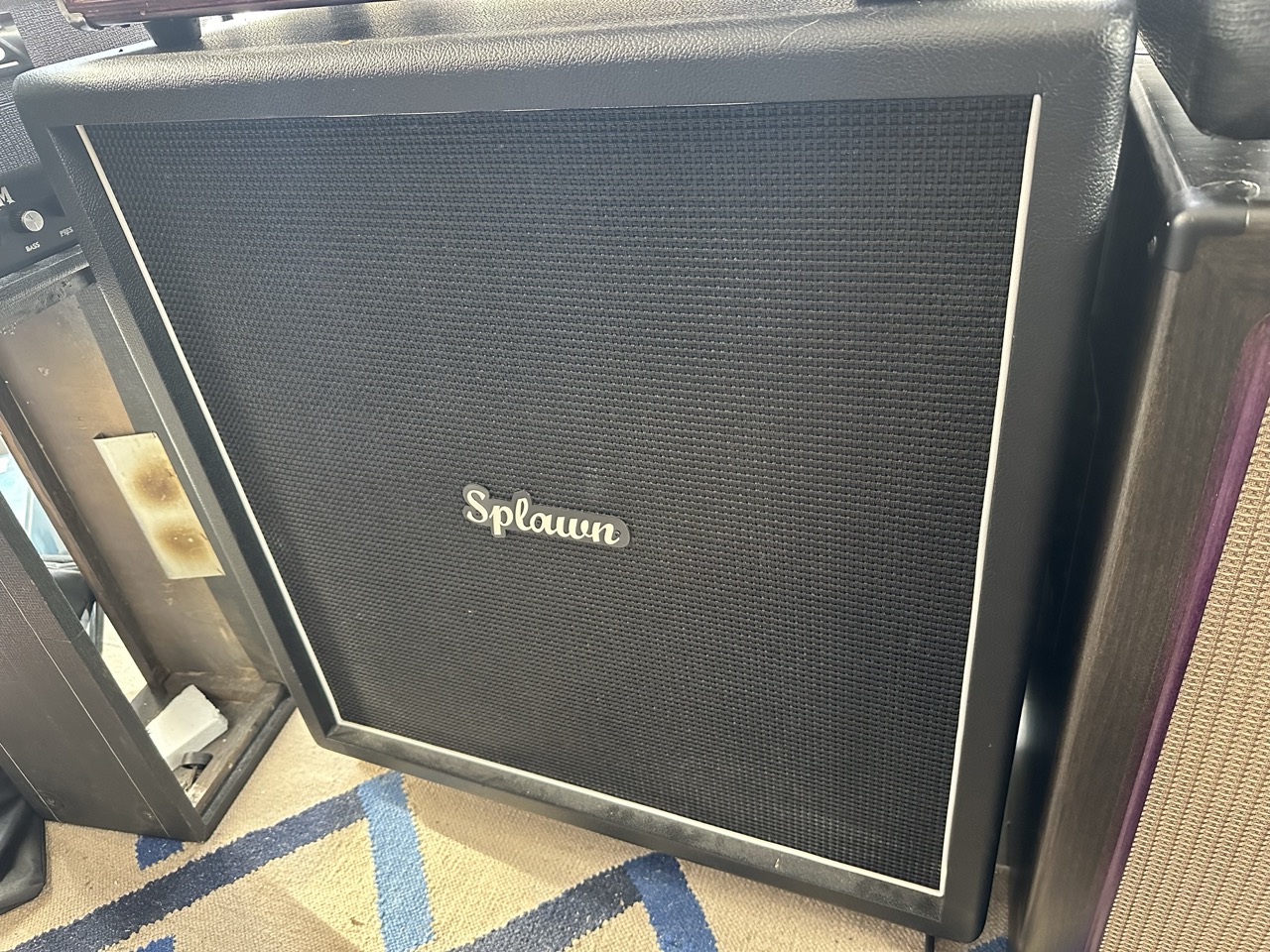 Second is a pretty clean Splawn 4x12 I loaded up with an X-Pattern of Scumback M75-LD and BM-75LD. This cab is tight and crunchy. Really loves Marshalls but sometimes surprises me in how it gels with other amps. 16 Ohms. $550 ($175 Unloaded)