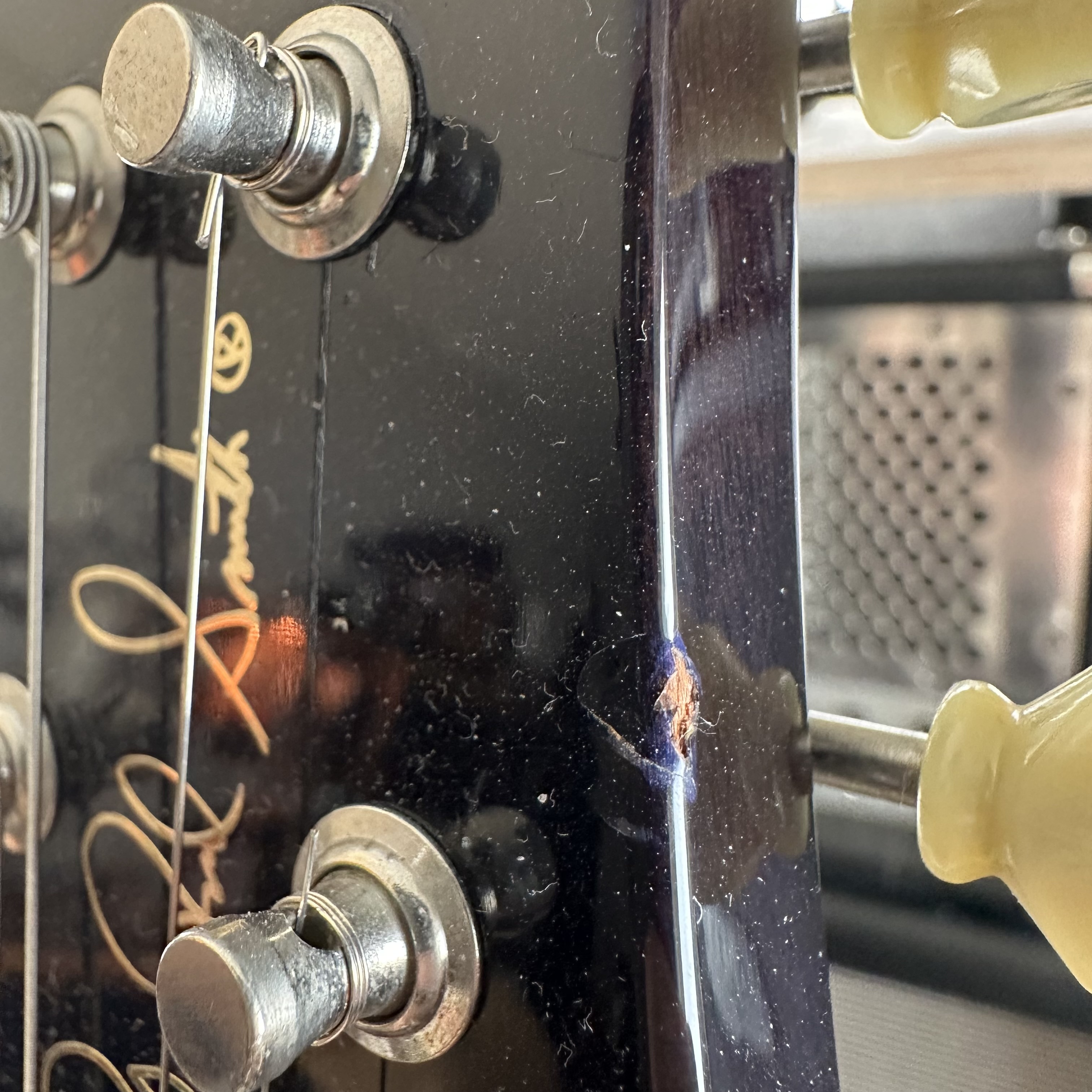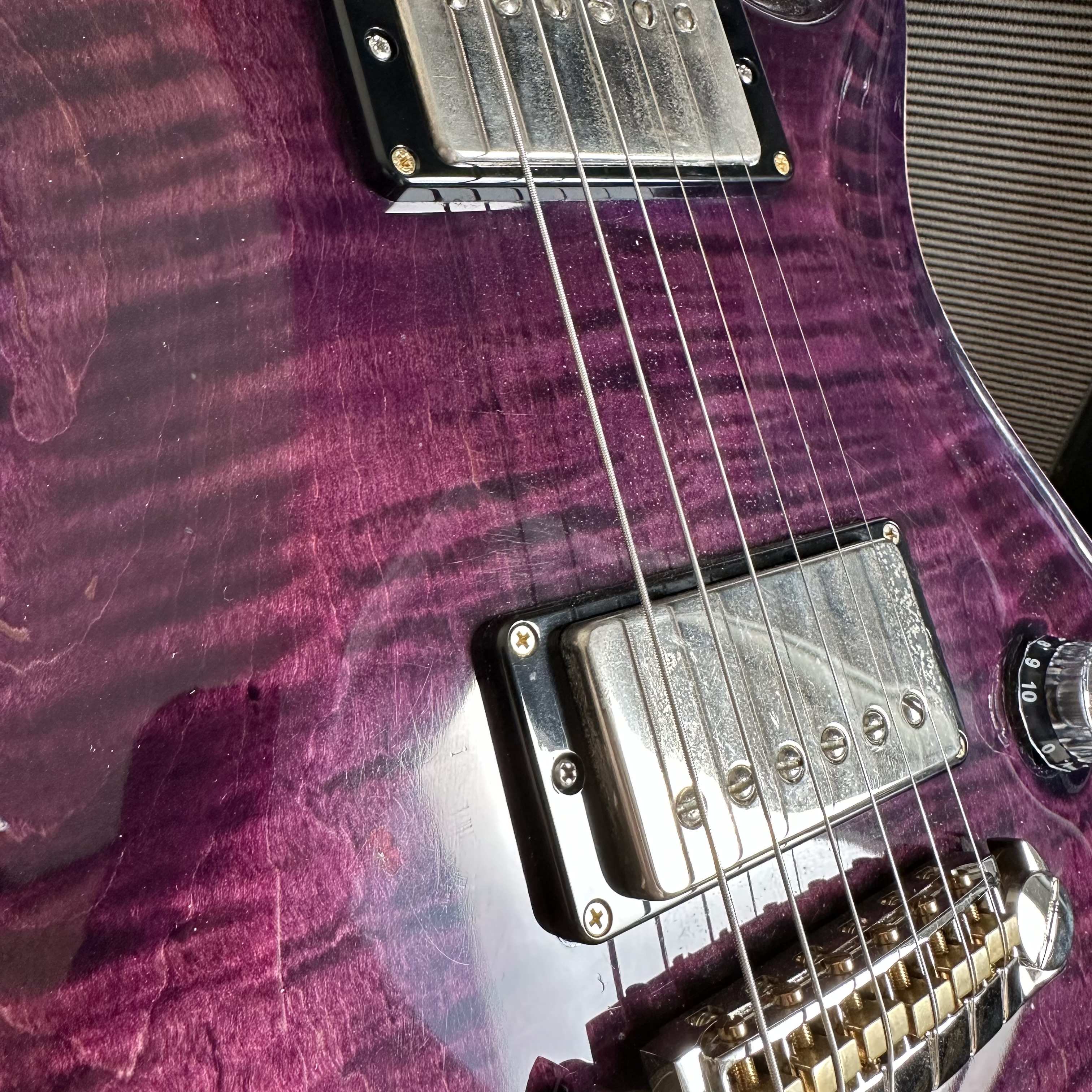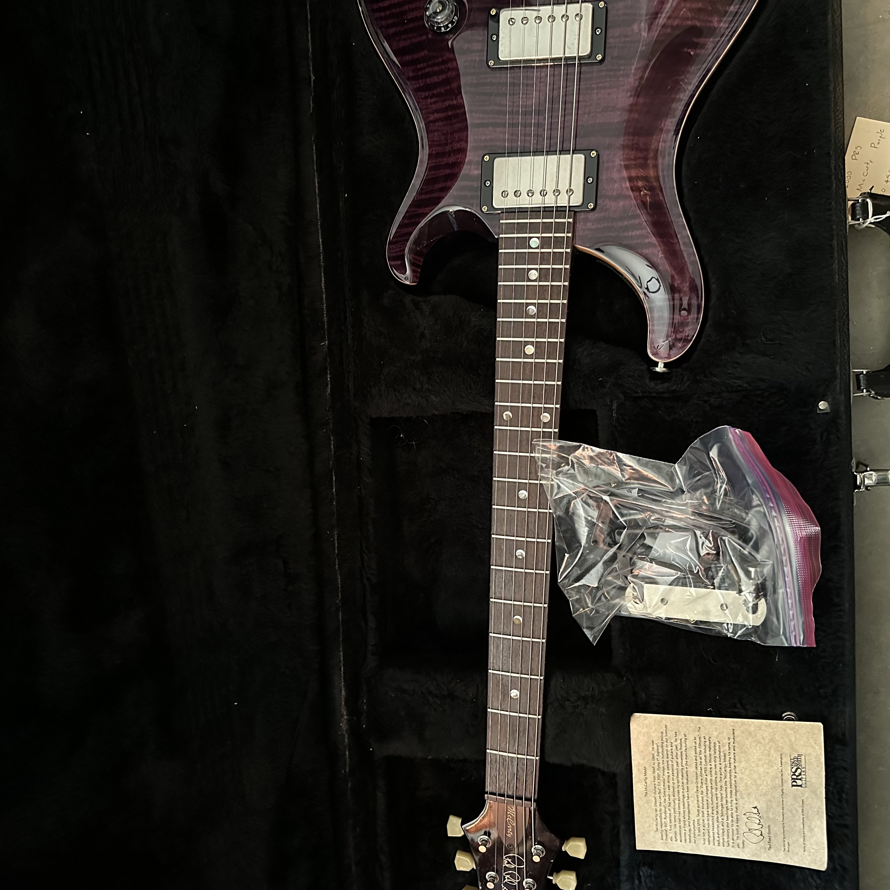 Beautiful purple McCarty with a great top. Some dings and nicks, but nothing you’d notice while playing. Frets are in really good shape.