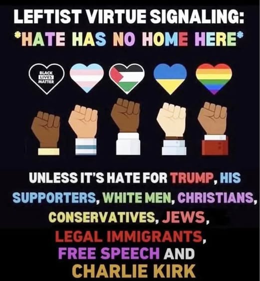 I laugh when i see "Love...ect" on protest signs. They don't even know their own minds and that it's a flagrant lie.