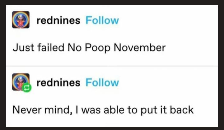 Stripped Rights Well-known member Nov 15, 2023 #1,792 Aynirar27 said: Fecal retention Click to expand... Damn straight! I ain't losing my essence.