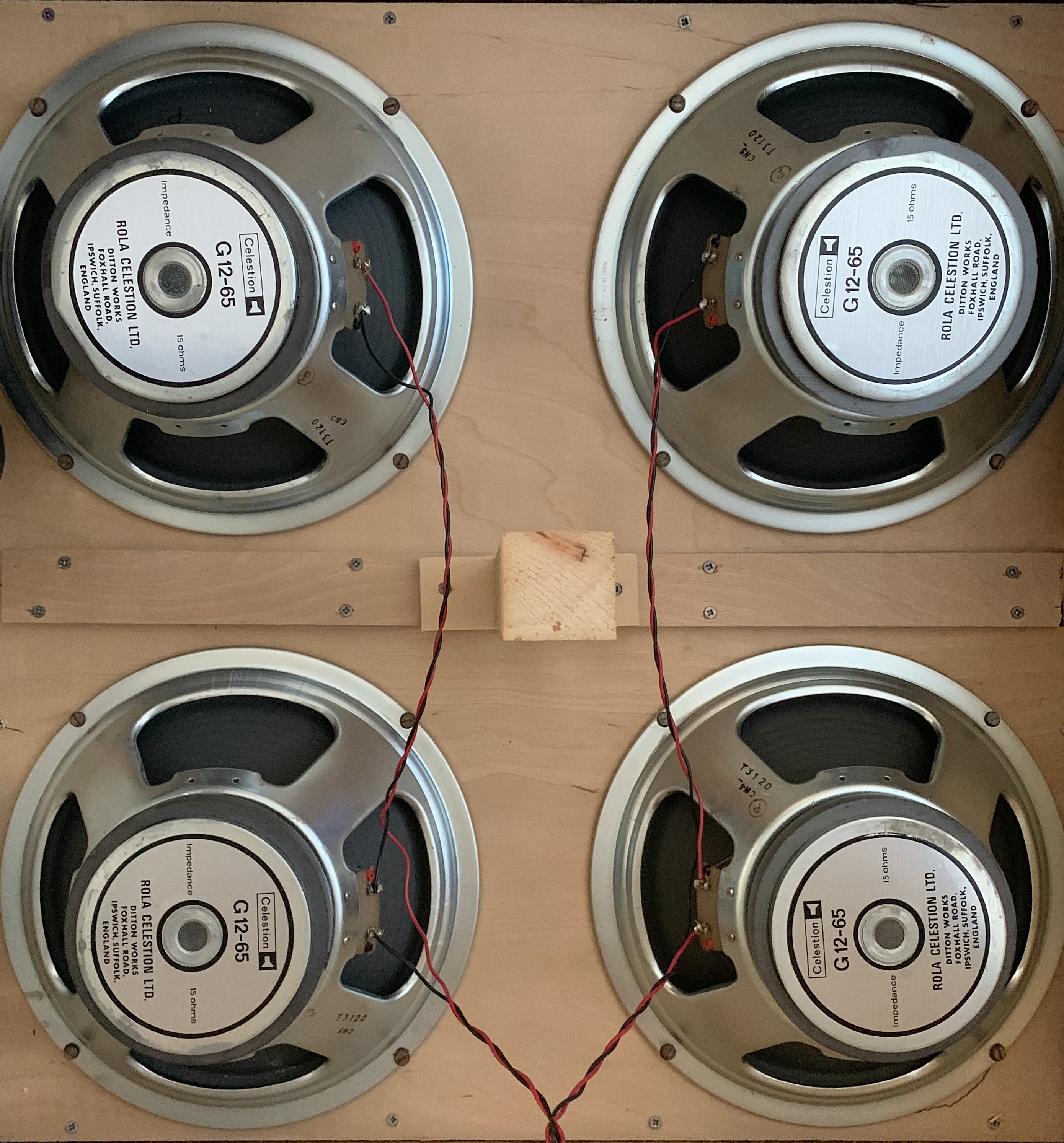 The ‘65’s are 1980’s and the Blackbacks are 1976’s, both are 16ohm cabs.