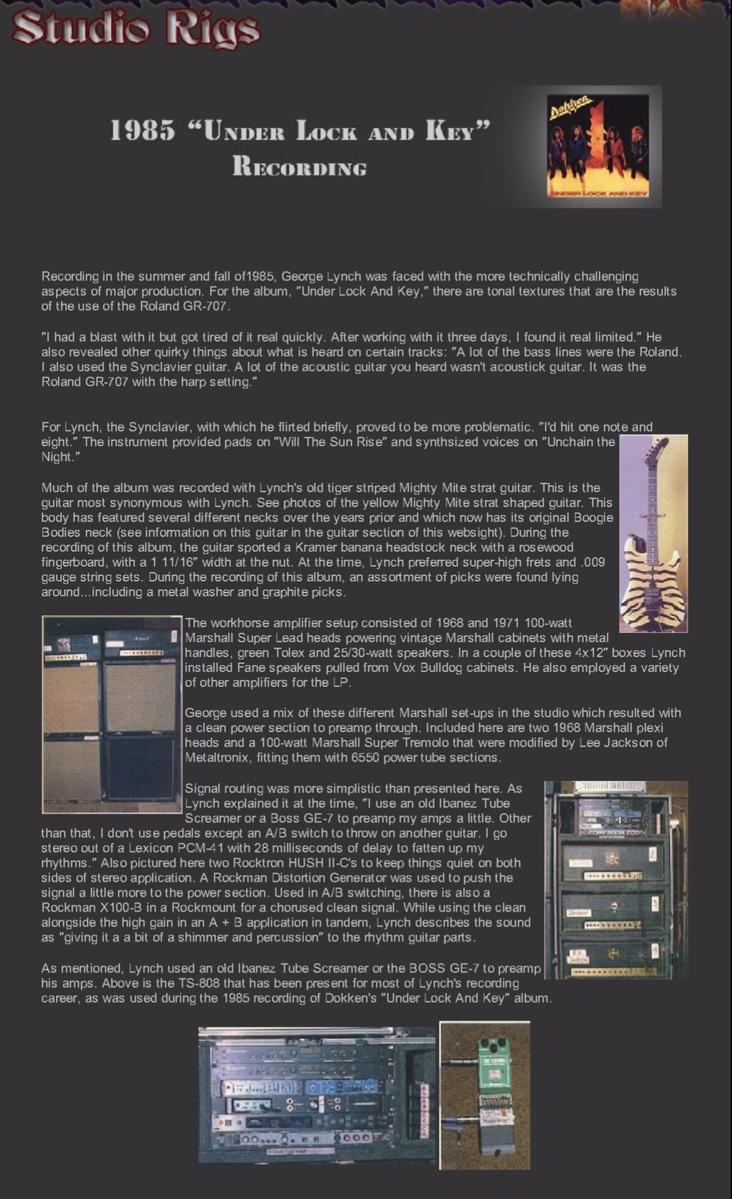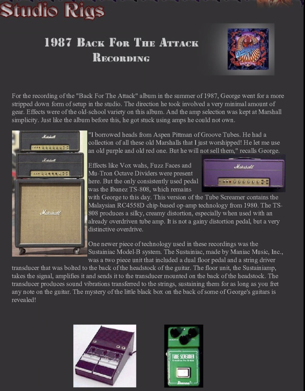 I heard they even mic'd an amp in the bathroom to get those crazy acoustics.There's a piece in Premier Guitar detailing how Dream Warriors was recording for the Back for the Attack album. According to the article, Lynch used a purple 100-watt Marshall plexi boosted with a TS-808. They also did some tricky stuff with double tracking and a few different cabs with varied mic placement.