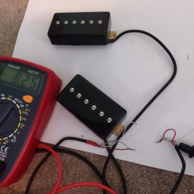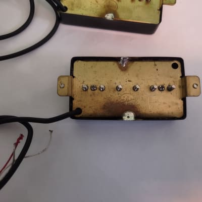Dream 90 humbucker sized P90 pickup set. Full lead lengths left and in perfect working order. Really good sounding pickups especially the neck!