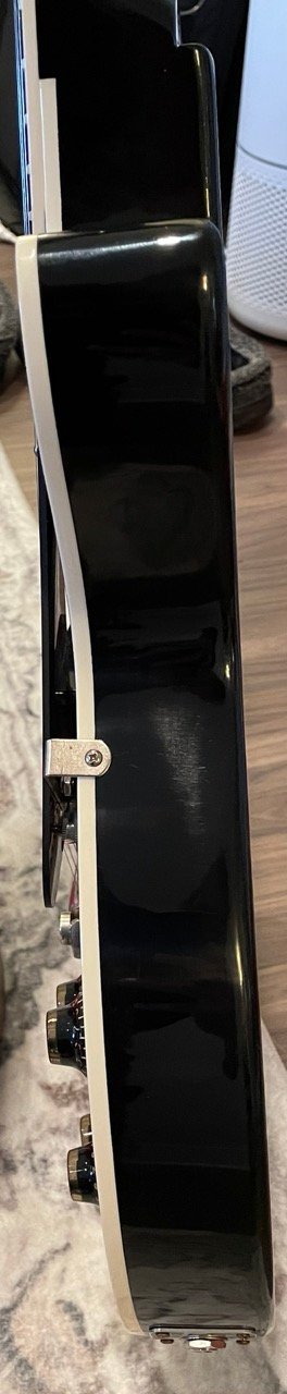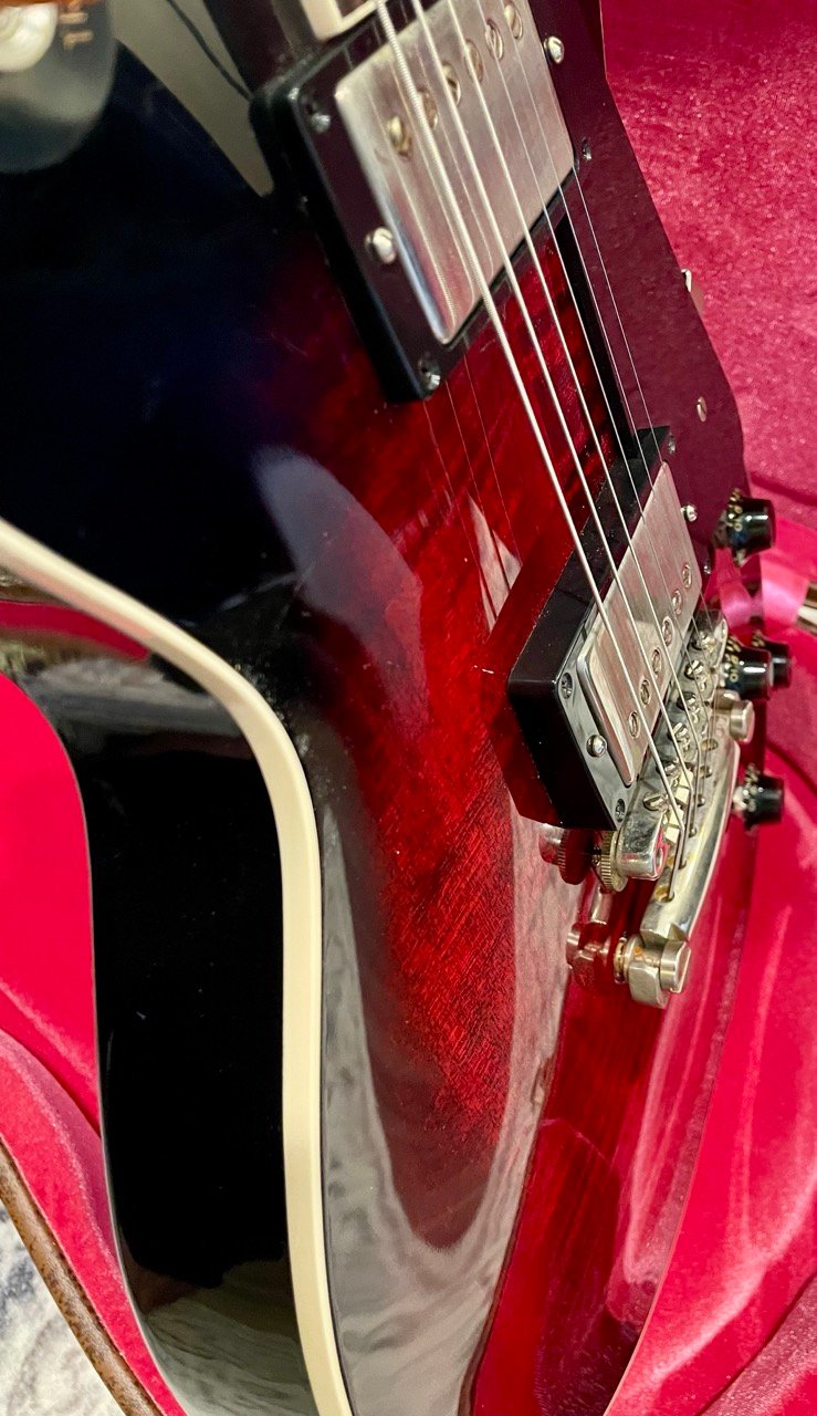 Defect-wise there are two small shallow dents on the back top of the guitar (pictured) and the case fabric above the toggle switch has a small tear in it (it came like this from the factory).