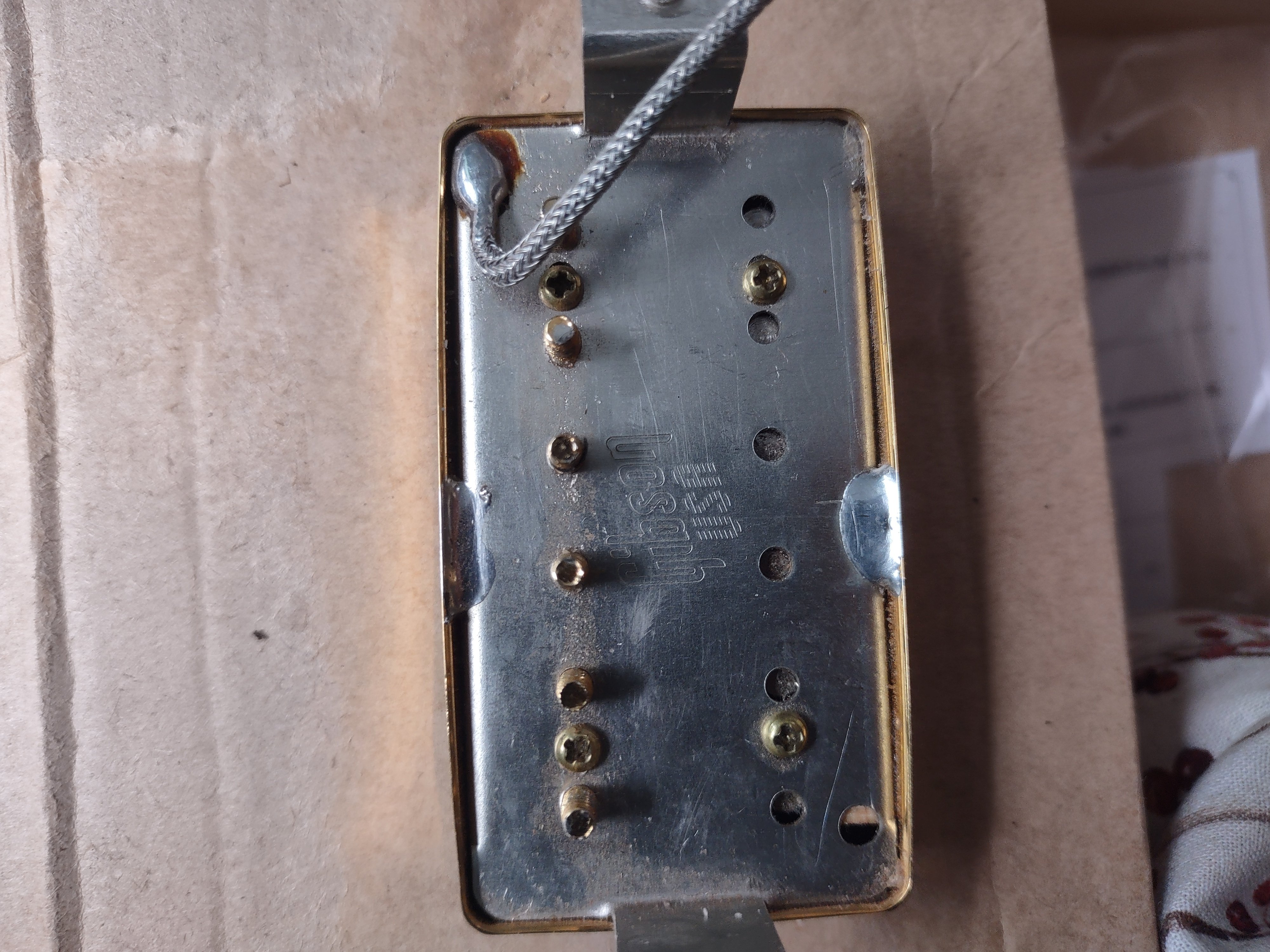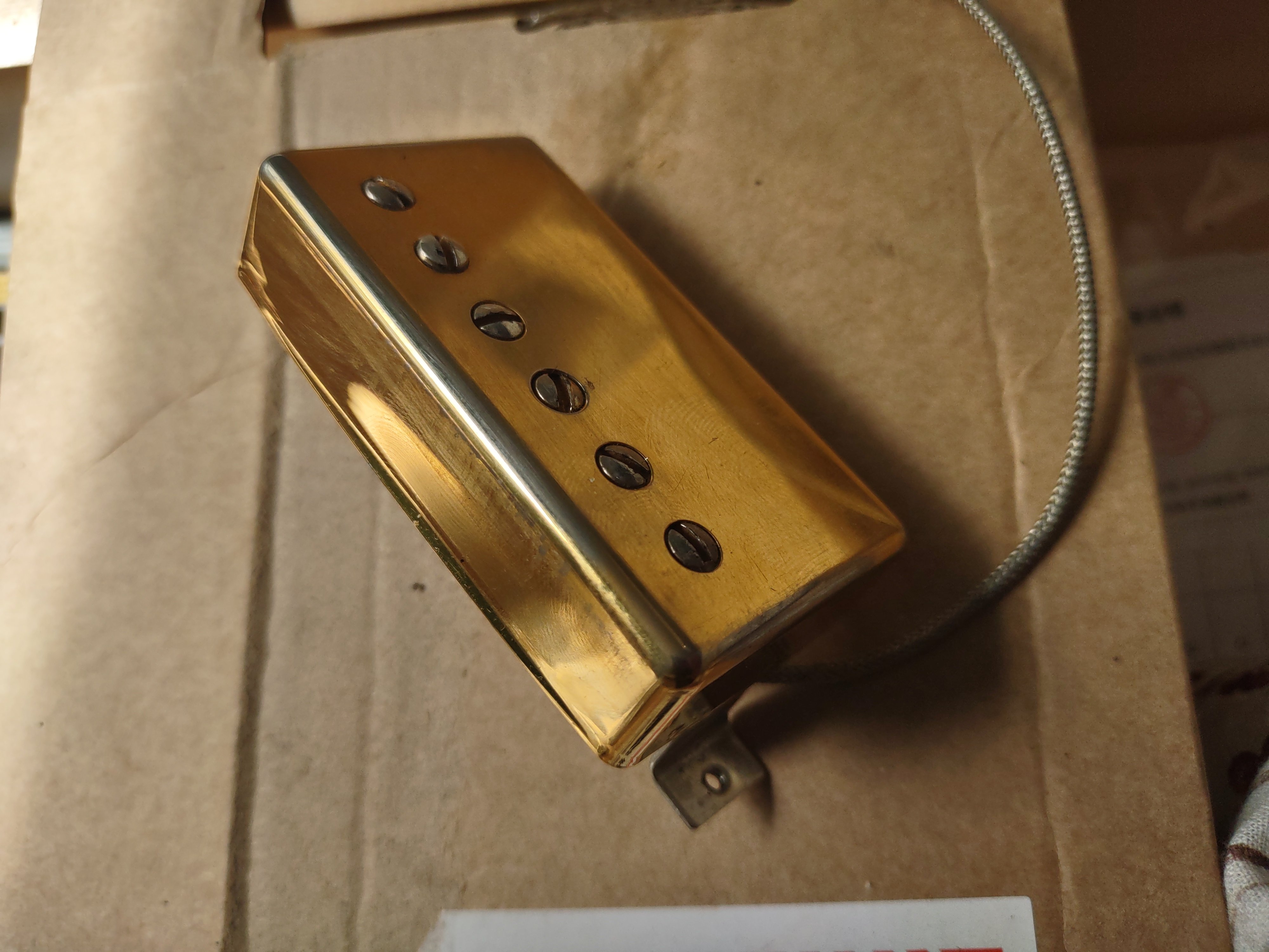 Used Gibson 490R neck pickup in Gold with basically full lead left. Approximately 13 inches of lead.
