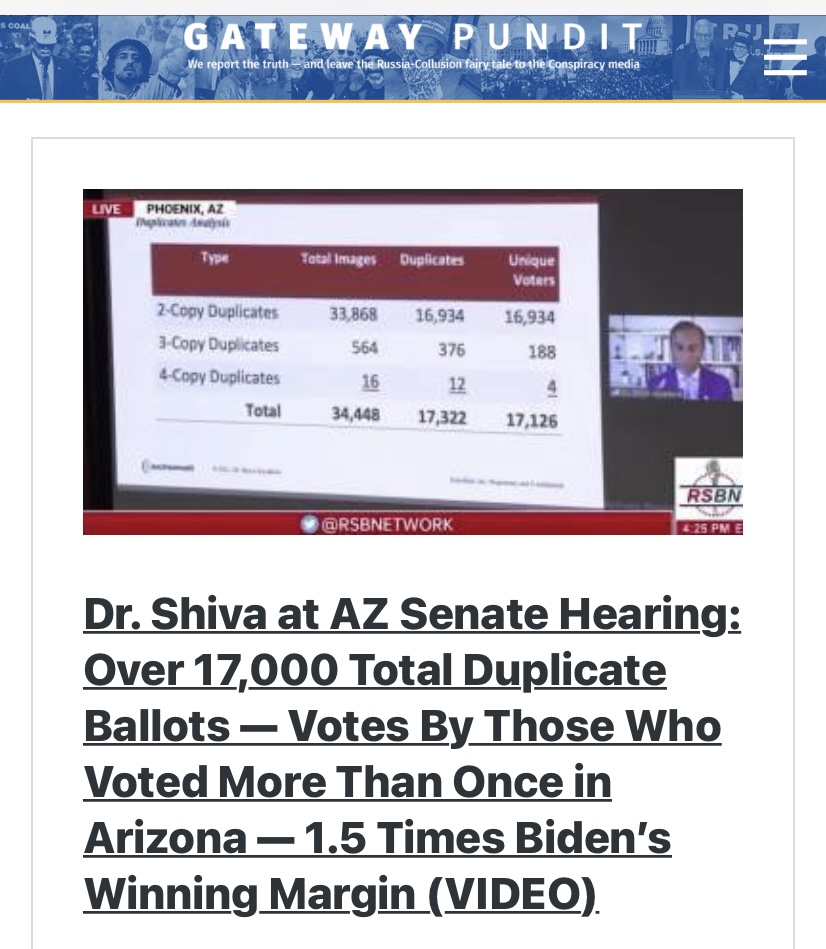 This is why media are crying loud that that count was right, of course the ‘count’ was right, It’s the duplicated ballots that’s the fraud?Lots of duplicates. Remove them and Trump won AZ. Anything to the contrary is a lie and ass covering because they got caught.