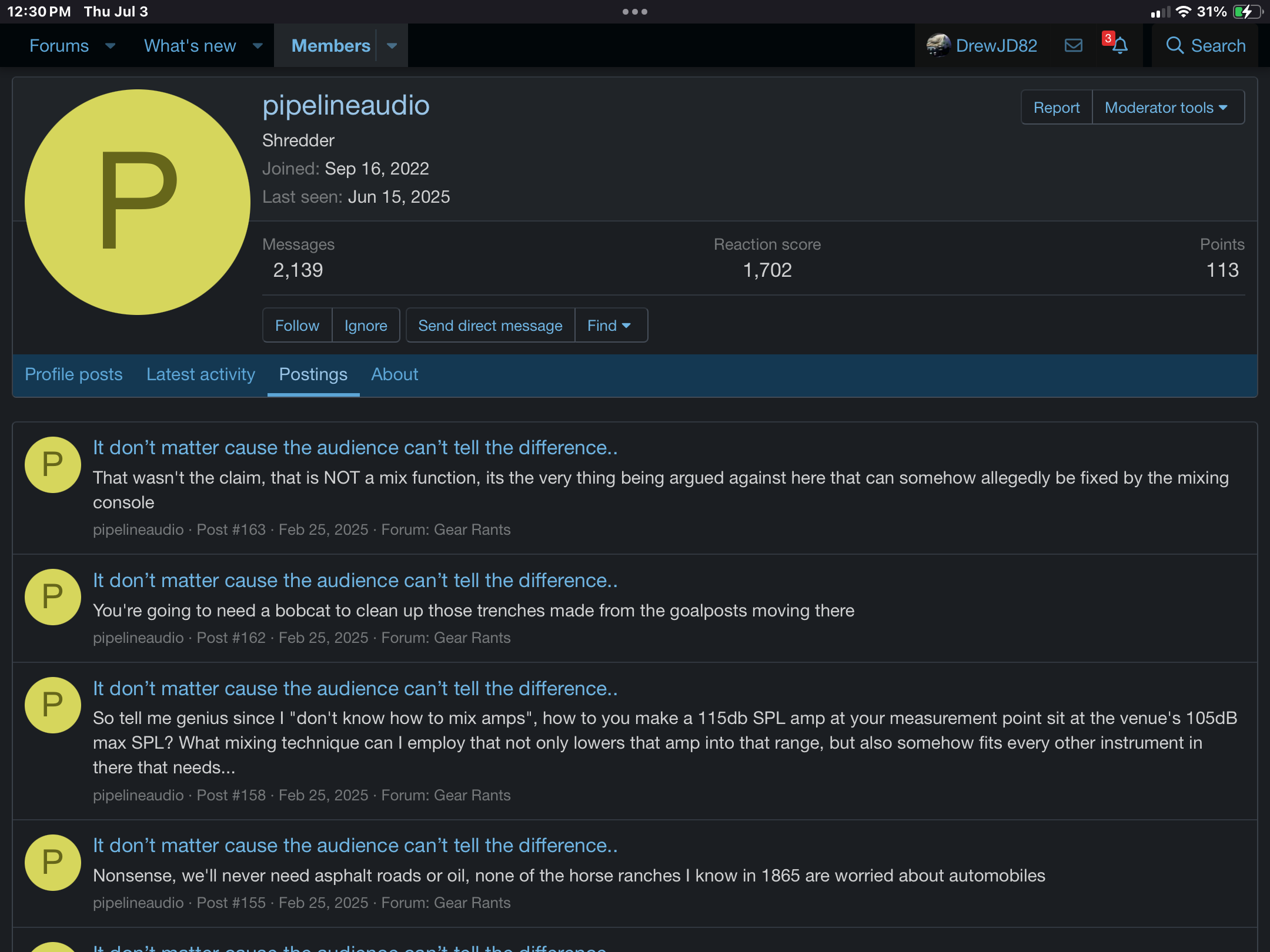OK, last post and then I'm off to a nice long relaxing 4th of July weekend at my cabin. Hope you have a good weekend too. But, 'blackmail'? Come on man. You still don't get it. If I was considering buying something from you, like most people, I would do some research. If I found those posts, which were only an example from one day, I'd probably go to someone else. And although I agree with you on the topic of deportation, I don't hate all of the mothers and children especially that are here by association. And it doesn't really matter what subforum it is in. It is still public. Therefore, as a Sales Representative of Providence Cables, I personally would be more careful. That, and it is a bad look for Rig-Talk, IMO, to be associated with someone who seems to not give a shit and was granted access to his own subforum in the Manufacturers section.