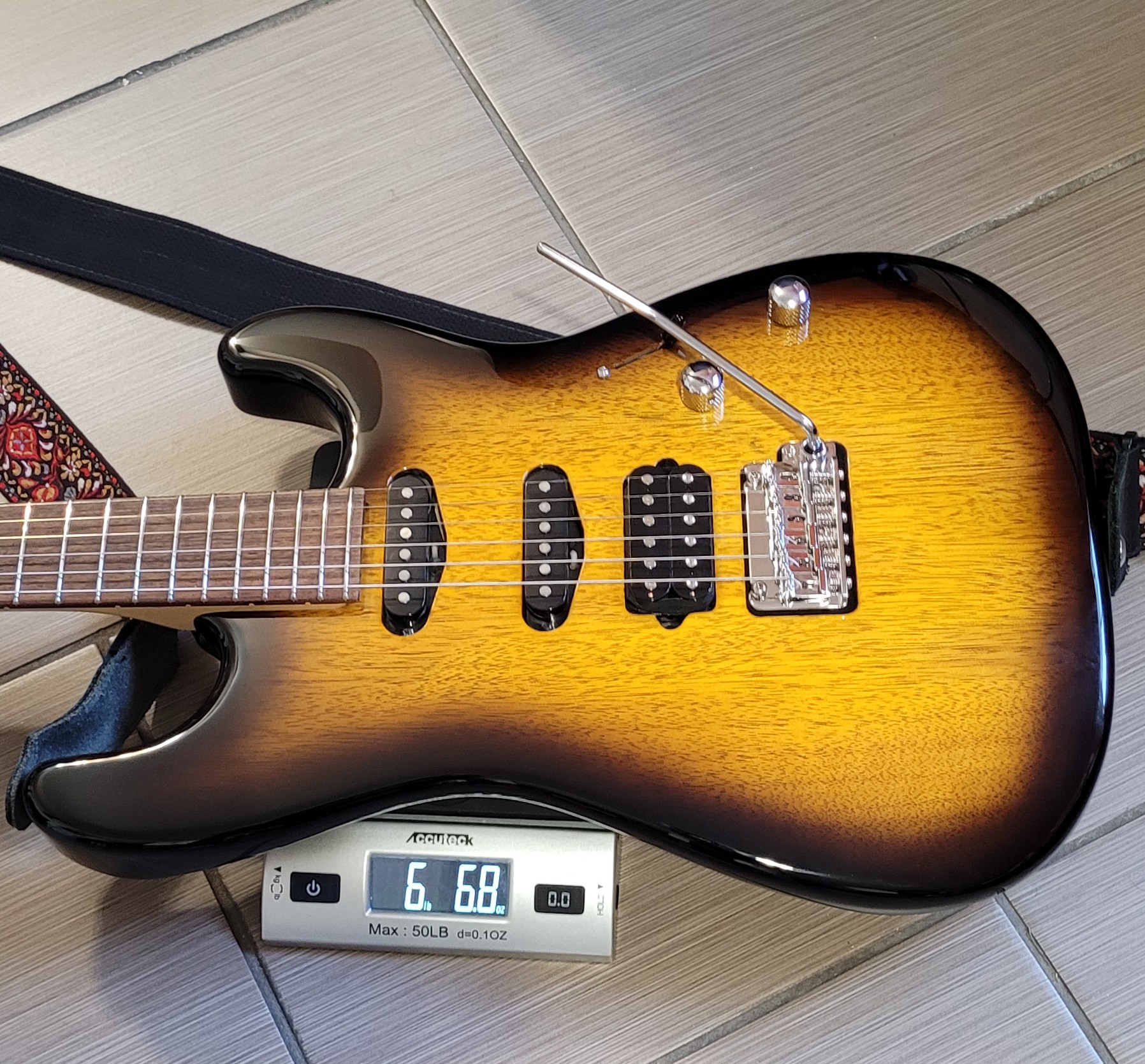 When I weighed all mine, they are all around 7.5 pounds. I guess I have a type, lol. If I pick up a guitar and it is heavier I put it right back down. I specifically look for lighter versions of the models I want.