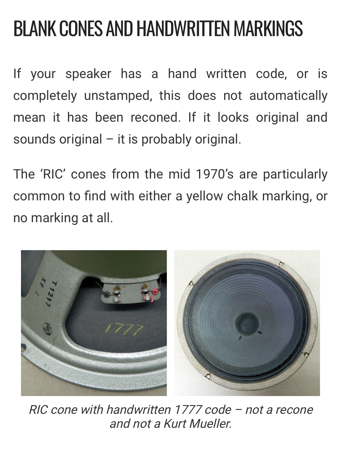 I have two July 1989 greenbacks which are stamped with 6402 on the cones. I just received two May 1989 greenbacks that don’t have 6402 on the cones but just a greenish handwritten “3” on them. I read on bygone tones that some mid 70’s RIC cones were hand written. Since 1989 was the first year of greenback reissues, is it possible they used some leftover RIC cones? Or likely re-coned? Thanks!