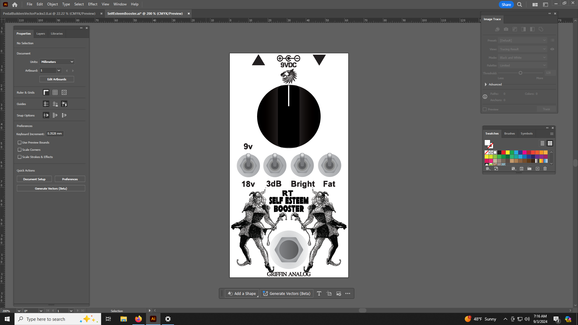 A modded EP Booster with 9v or 18v option , + 3dB , Bright switch and a 3 way Fat switch that would compliment any set up whether it's pushing the front end of your amp or boosting the volume at the end of your chain .