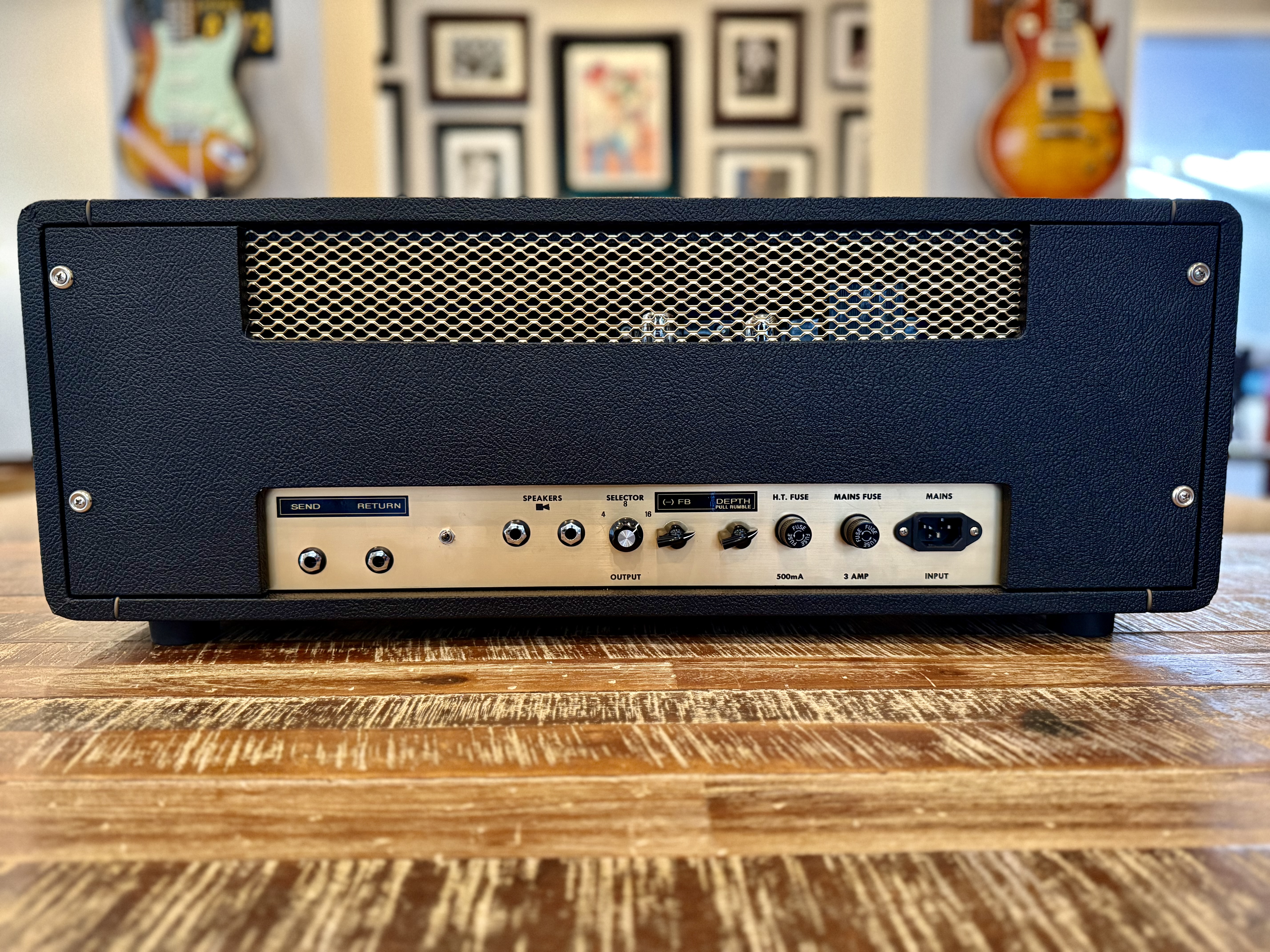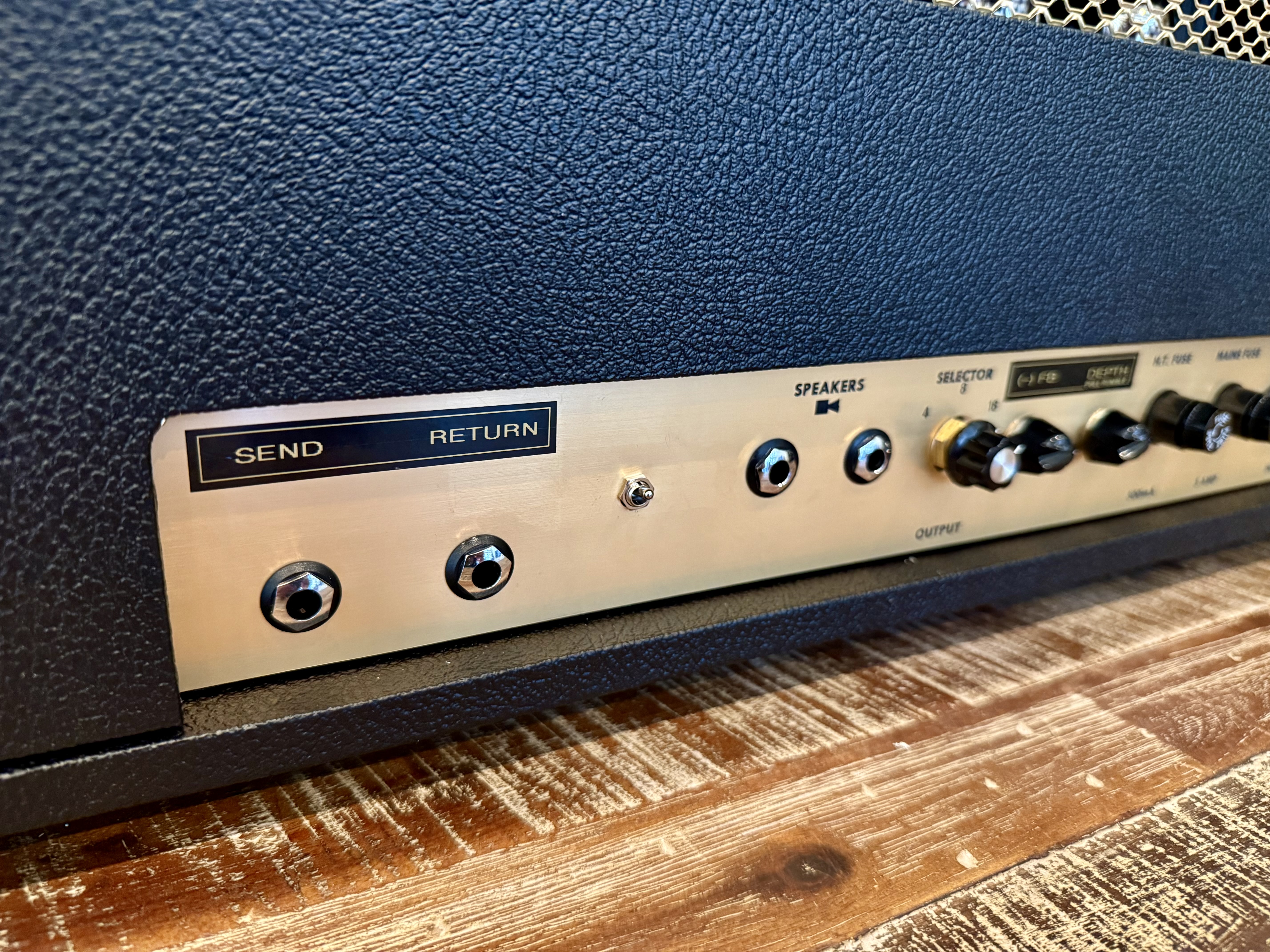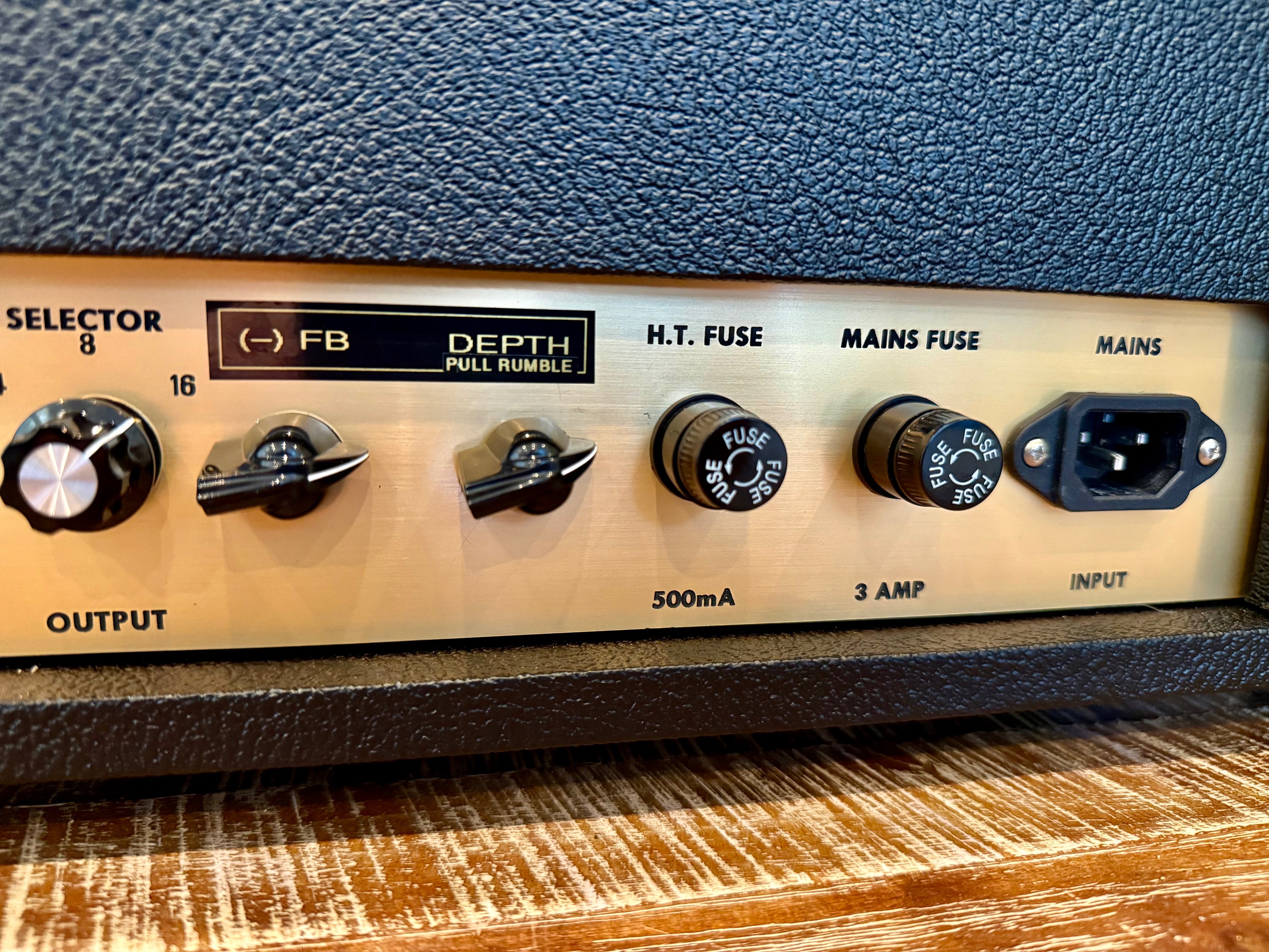 50w 4 stage ground up build with all new parts. Built last month. Heyboer transformers with ~ 460vdc on plates. New small box head shell. GZ fx loop, NFB and depth with pull rumble feature. Standard array of controls on front.