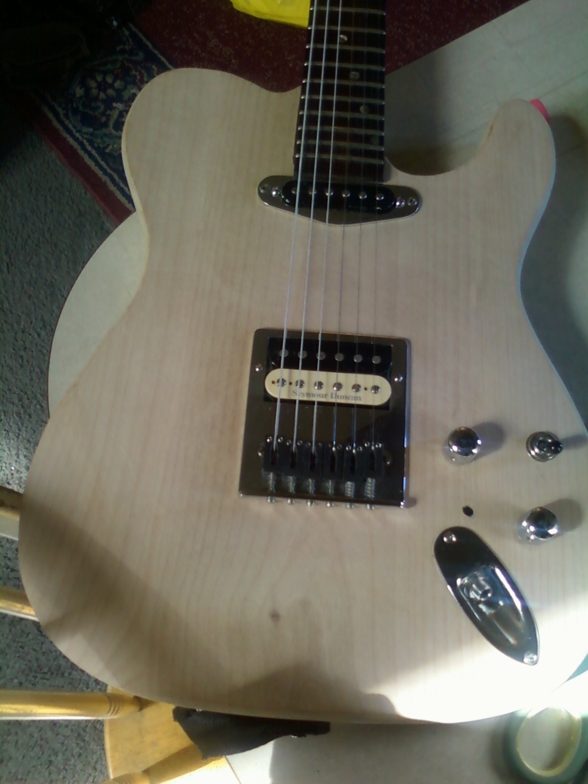 got this guitar I'm messing with - leaning towards just staining, but still considering painting it. Any ideas? If I stain, should I go dark? FYI - I'm definitely no pro at this and just stripped the paint off to make a slant in the body where the right arm goes, and I'm not worried about looking too professional, as long as it looks ok from stage.