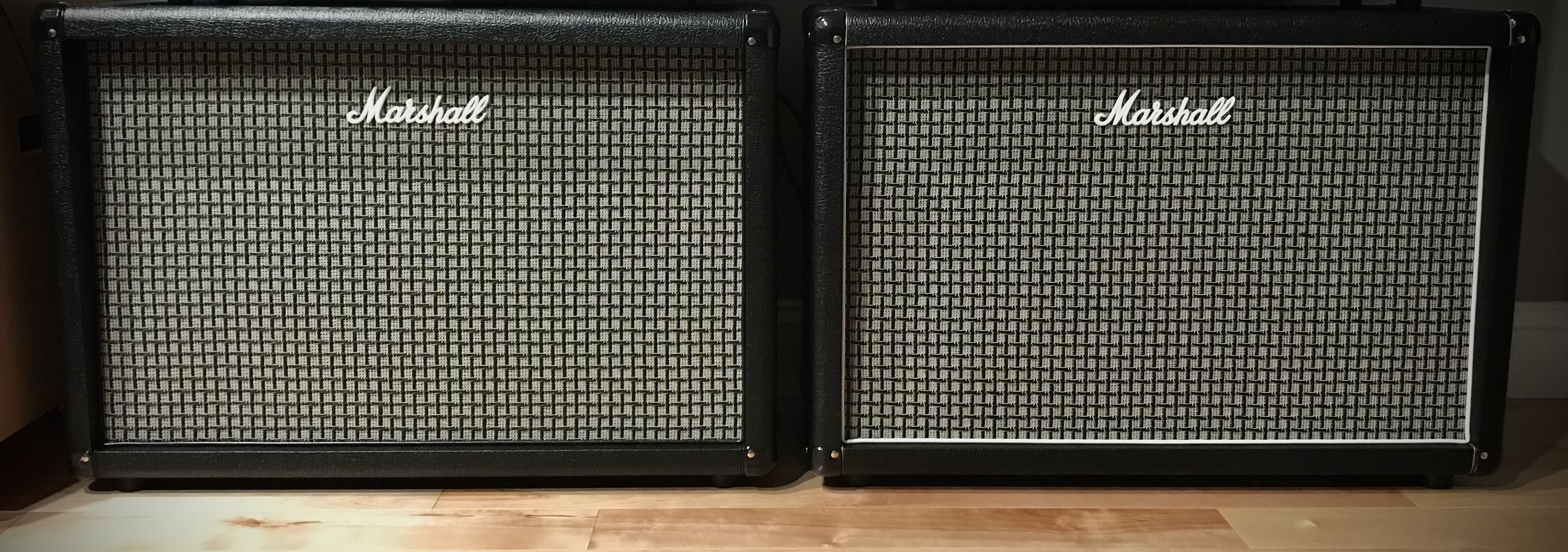 2 Custom made 2X12 Marshall specs. One is loaded with clesestion EVH speakers 16 ohms. The other is loaded with Celestion V30’s 16 ohms. $500.00 Each.