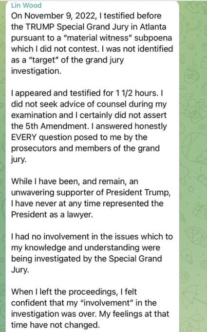 Read between the lines. He didn’t rat out a trump, but he and Sidney Powell (former bff’s) have had a years long, bitter feud after that started getting bar complaints and awards of attorneys’ fees awarded against them for all of their frivolous election lawsuits. I bet he had nothing kind to say about the kraken.Looks like CLICK BAIT to me.............can you show me where anyone was ratted out?