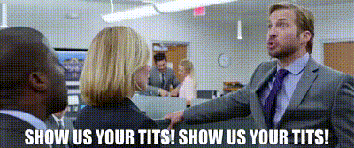 Actually, if you look closely at his mouth you'll see he's saying, "Show us your twat".