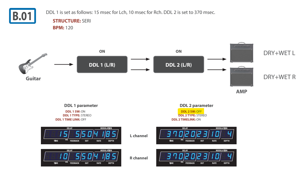 And if I do turn DDL2 on, then I hear the 370ms delay but then I no longer ear the 15msec chorus-style delay of DDL1. Is it 2 presents in 1 but you have to toggle between them inside the settings? So... confused...