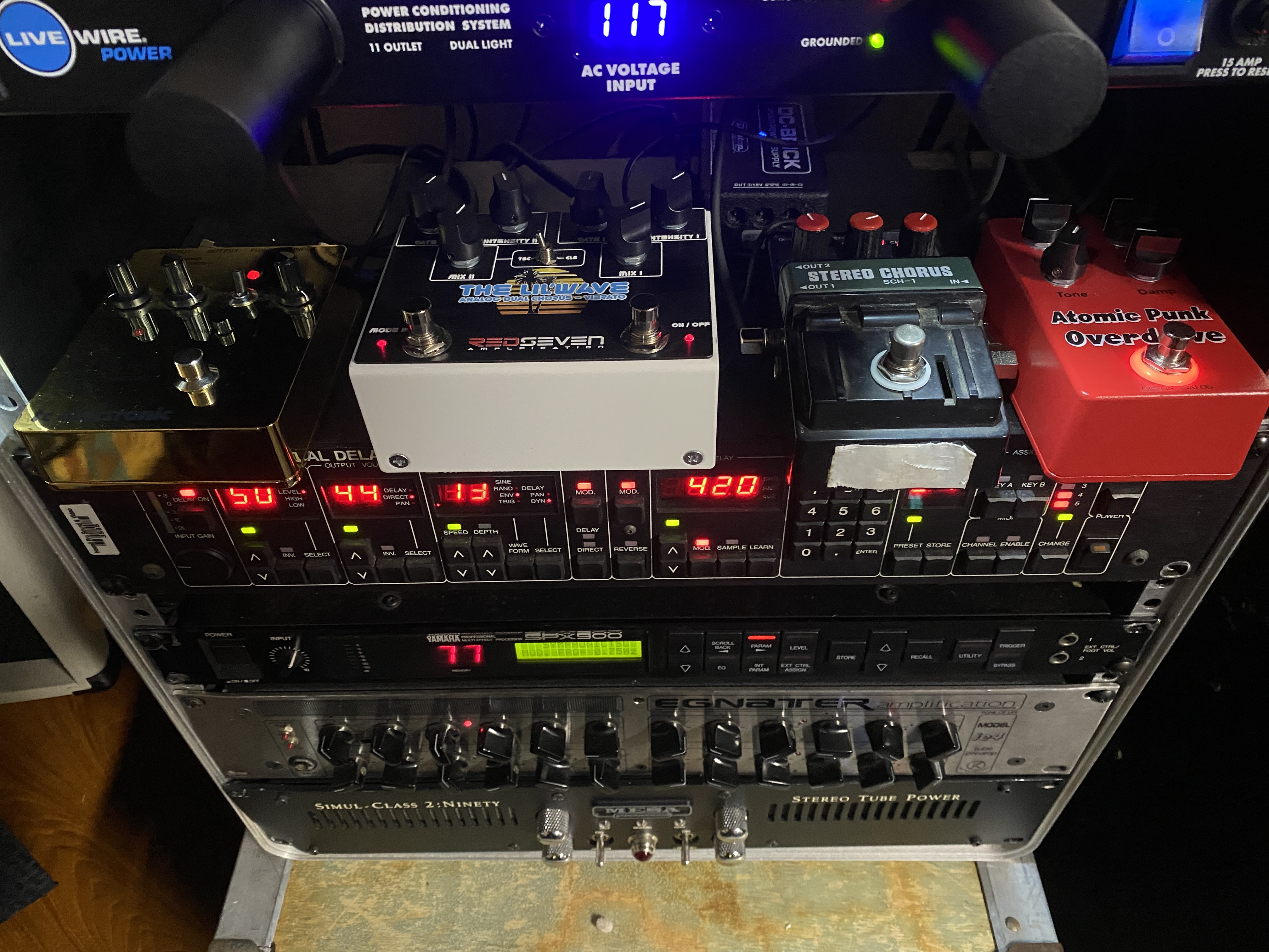 I have tried with just the Tri-Avatar (i.e. no Timeline and no BigSky) with the same results. I have tried every setting combination on the Tri-Avatar. Level high and low, mix from 100% dry to 100% wet, the Depth settings all over the place. I have tried 3 different line level methods. Direct out from my amp, using a Suhr Iso line out box and a Suhr Reactive Load.