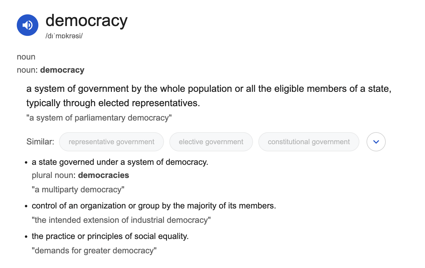 We have seen this kind of things a few times over the last few years. Some examples would be the definition of recession and vaccine.Agreed. That definition isn't accurate. "Typically through elected representatives" should be taken out. That makes it a representative republic or similar. A representative republic typically has democratic processes, but it's not the same thing as democracy as a system of government.