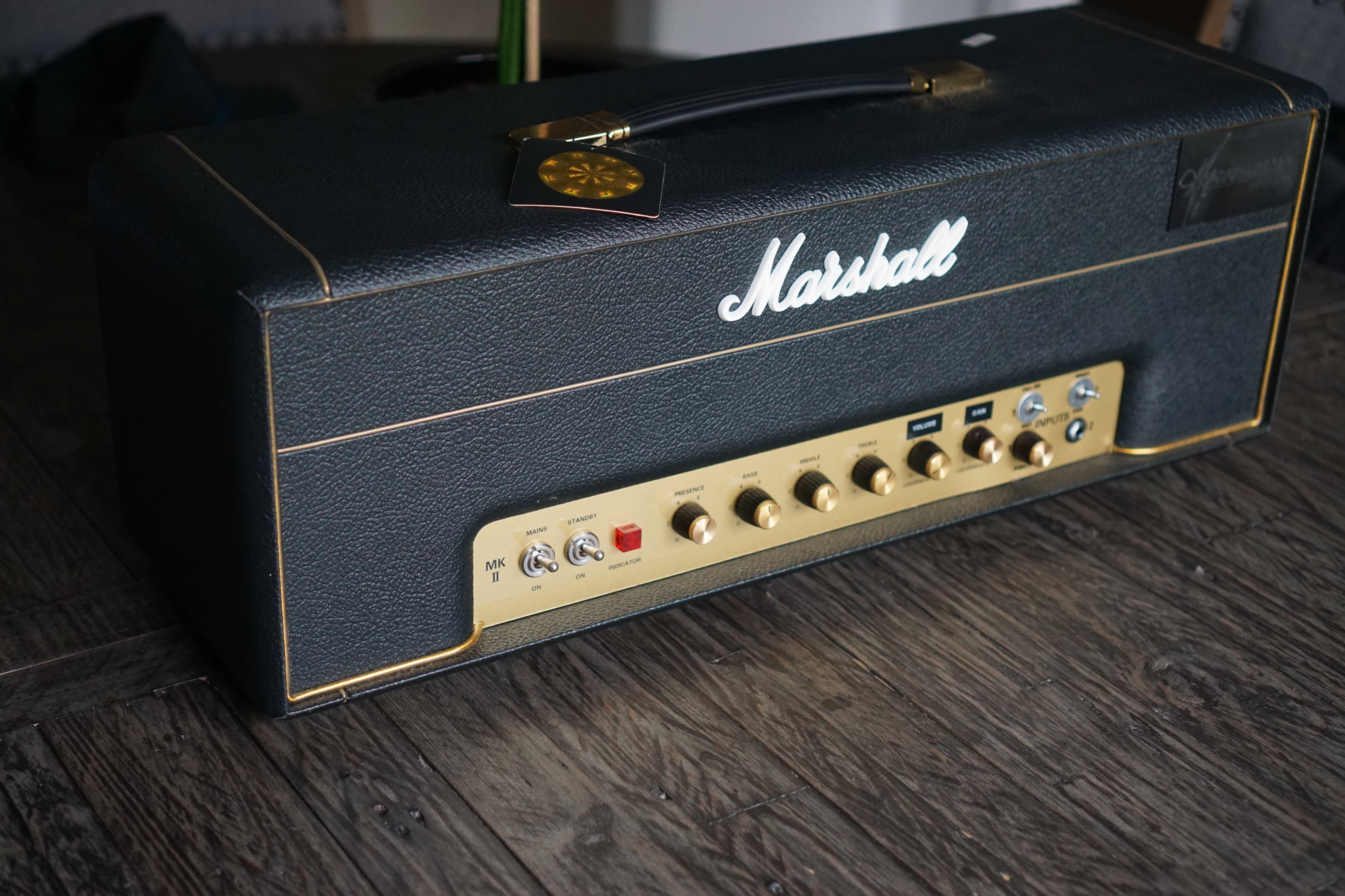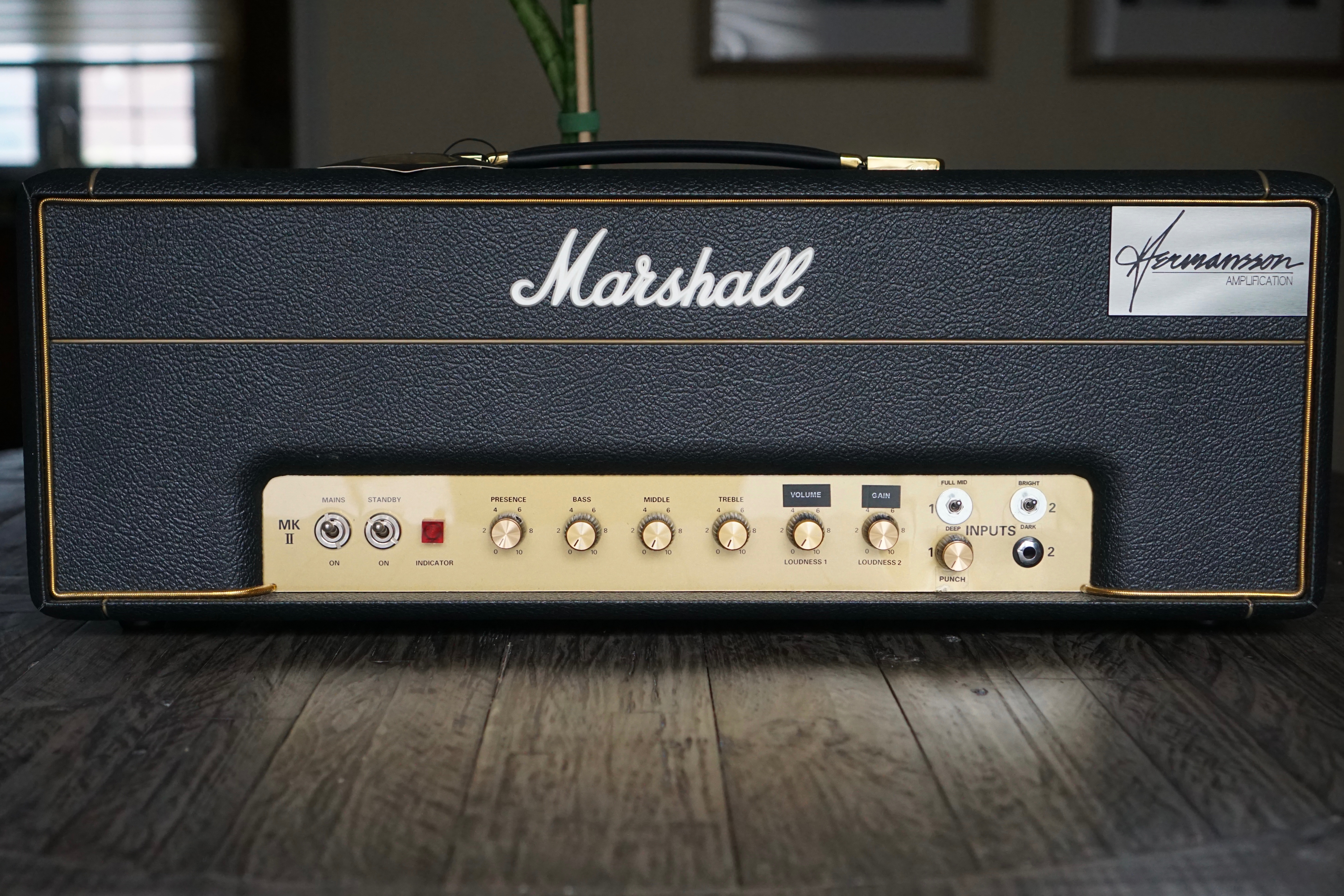3 way mid, 3 way bright, and Punch control. Loaded with EL34’s. Single channel, but the volume clean up is other worldly. Fantastic shape. There’s a subtle bend in the plastic faceplate near the punch knob - completely cosmetic just being transparent. You have to look hard to notice it.
