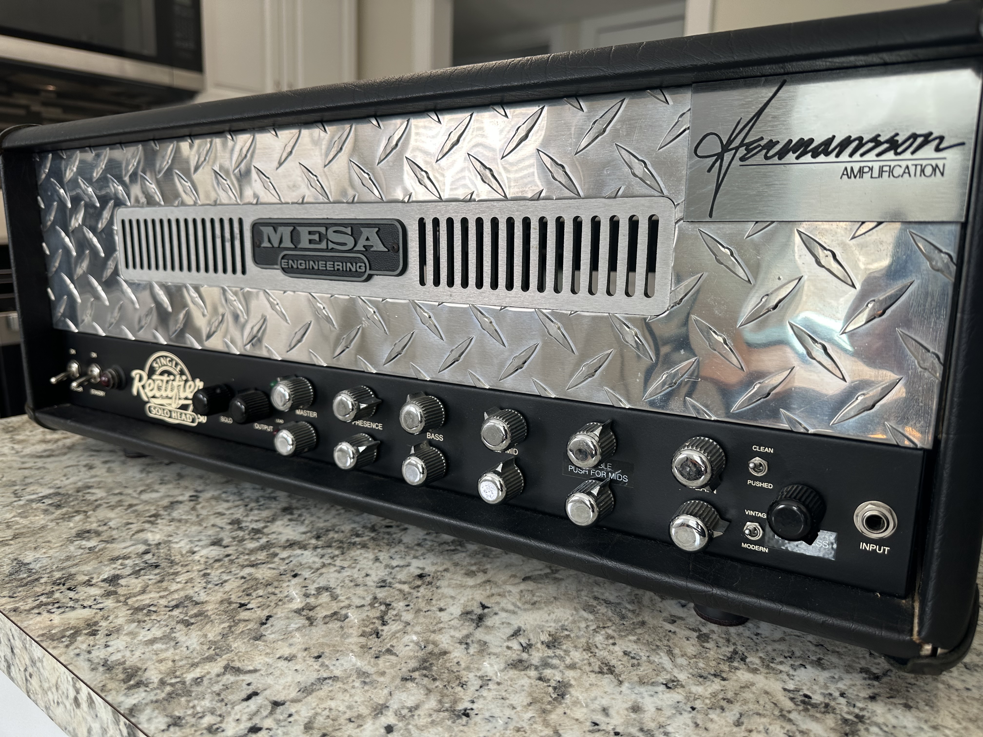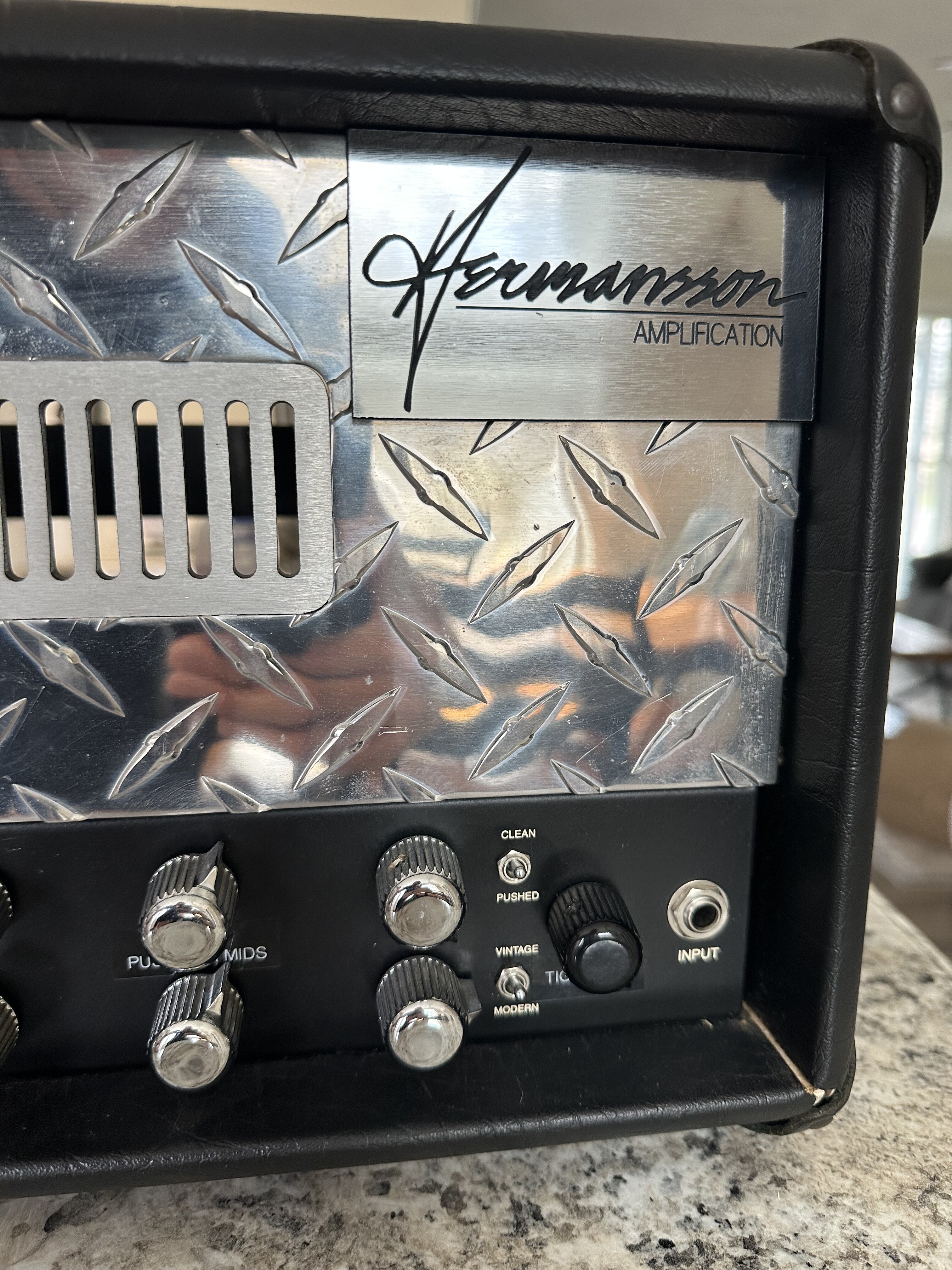 Incredible amp. Henric revoiced the amp and added his magic touch to it. Can get super tight with tightness control dialed all the way to the right. Haven't played anything like it! Headshell is cracked in the right corner as you can see in pics. Everything is stable. Will be packed well! $3200 shipped. No trades. Thanks!