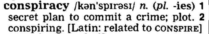 Put the words together and you get literally this threadThe term has come to imply something entirely different than what the phrase actually means. Unless you believe it's impossible for people in positions of power to conspire to commit crimes, in which case you're simply naive. I think what people mean is more something like, "Crackpot theory."
