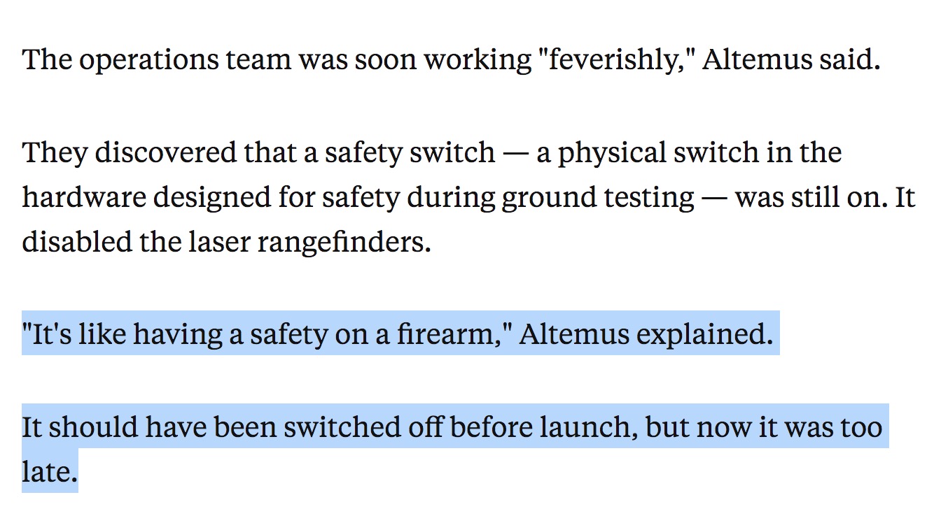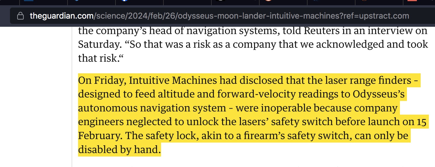 So you're saying the problem wasn't that a switch wasn't flipped, contrary to all the reports and the CEO himself, but rather the switch was properly set but wasn't attached to the wiring?Not realizing the harness they installed before launch wasn’t powering the safety switch. It’s in the video dude. He said it was their fault. He said it was an oversight.