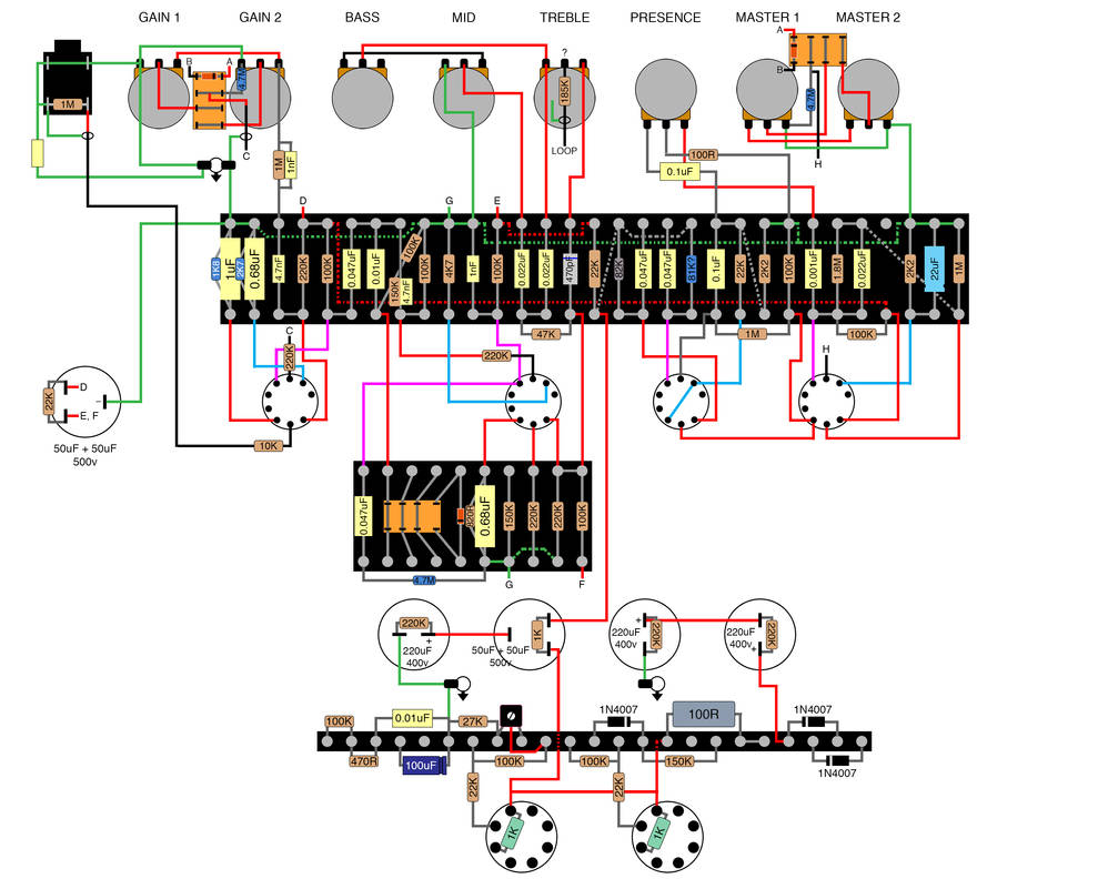 This solution works perfect. Amp starts up on master 1 and 3 stages without a foot switch. Pull the treble pot and you’re at 4 stages. Exactly what I wanted. There’s no popping or noises. Functions great and no more foot switch and cable necessary.