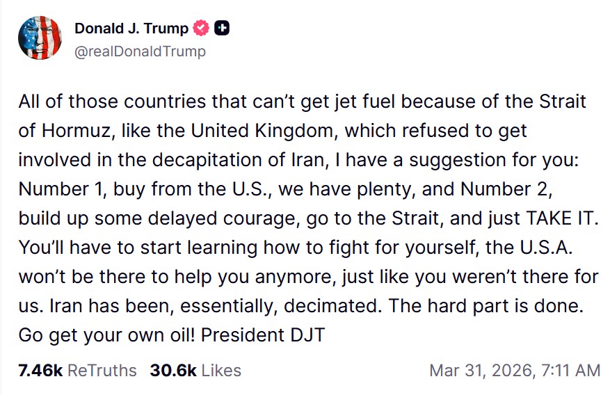 Saying the quiet part out loud lmfao.The ONLY reason they can't buy fuel is because WE and Israel attacked Iran without advising any of those countries first.