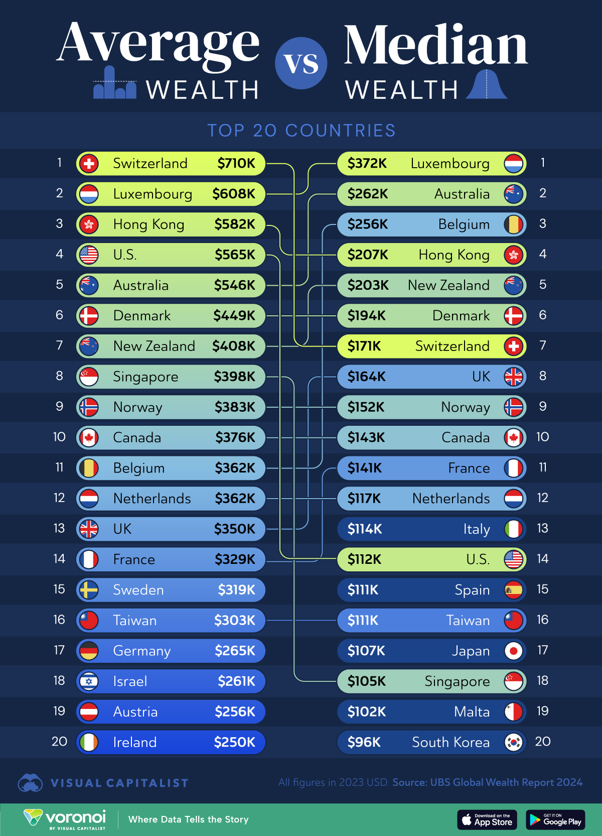 For a long time Australia and NZ were more balanced. They didn't have the excesses of either communism, socialism or the US where it appears to be wealthy but in reality the wealth is concentrated in the upper wealthy and most people aren't as wealthy as it would seem. Try and find the US on the median wealth chart here. It drops a long way down. That's because the median person in the US isn't that wealthy - the wealth is concentrated at the top,