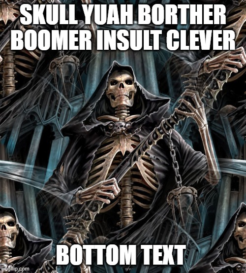 There's a half dozen of those "skull boomer" memes that make me laugh even without the text because theyre just something a dude who doesn't realize his naked reflection is in his guitar for sale pics would post unironically
