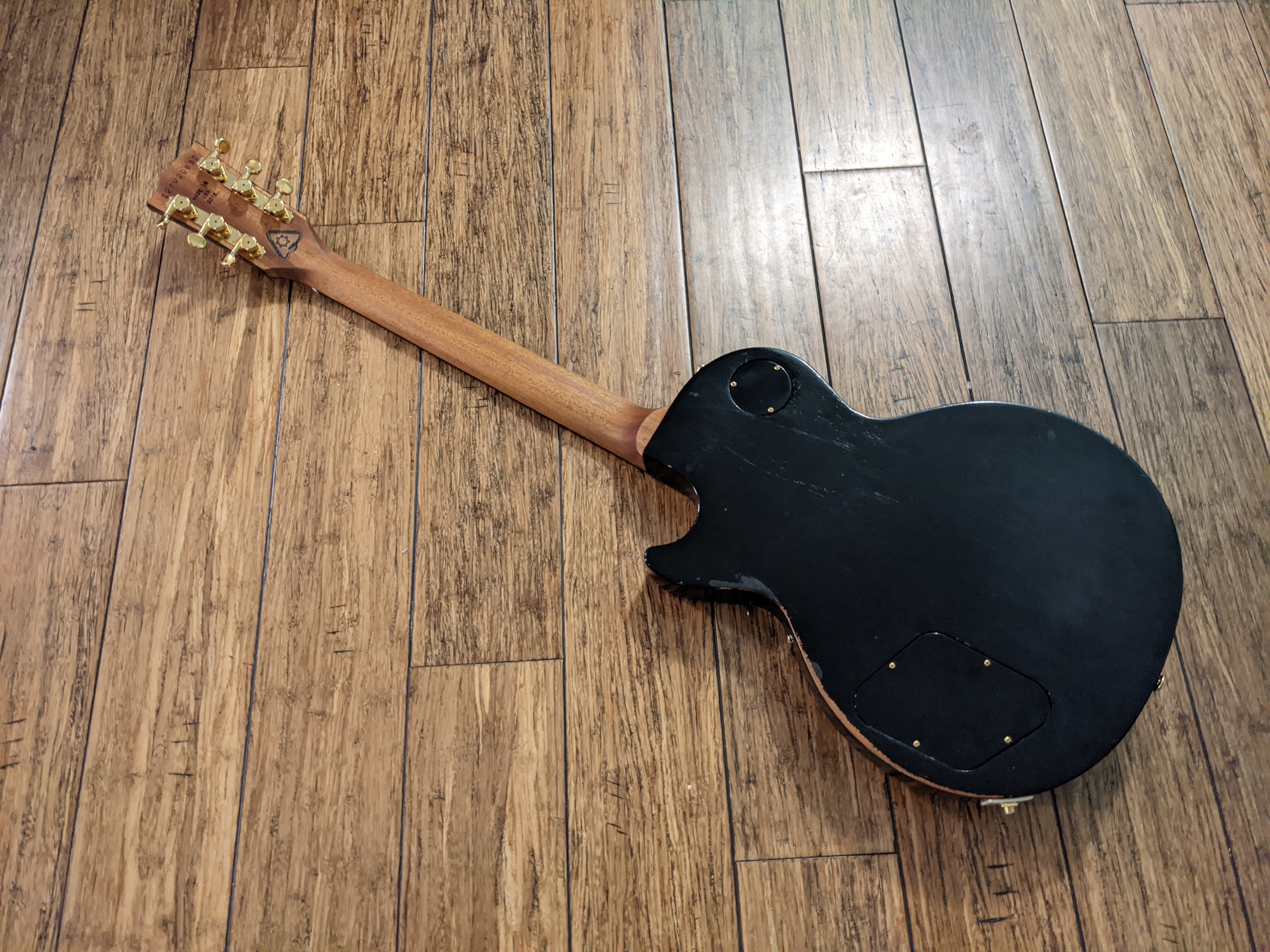 I've got a 2023 Gibson SG Standard '61.. Like all great Gibsons, it had a headstock break. It's been repaired, but I'm just not an SG guy. It doesn't help that this is the third SG headstock break I've fixed in the past month alone. One SG I just fixed was on it's 3rd headstock break.. The finish on this one is smoothed out and you can't feel it. Headstock veneer is obviously cracked, but I'm not going to touch any of it up, not going to hide it. I don't like to get too invasive with these things.