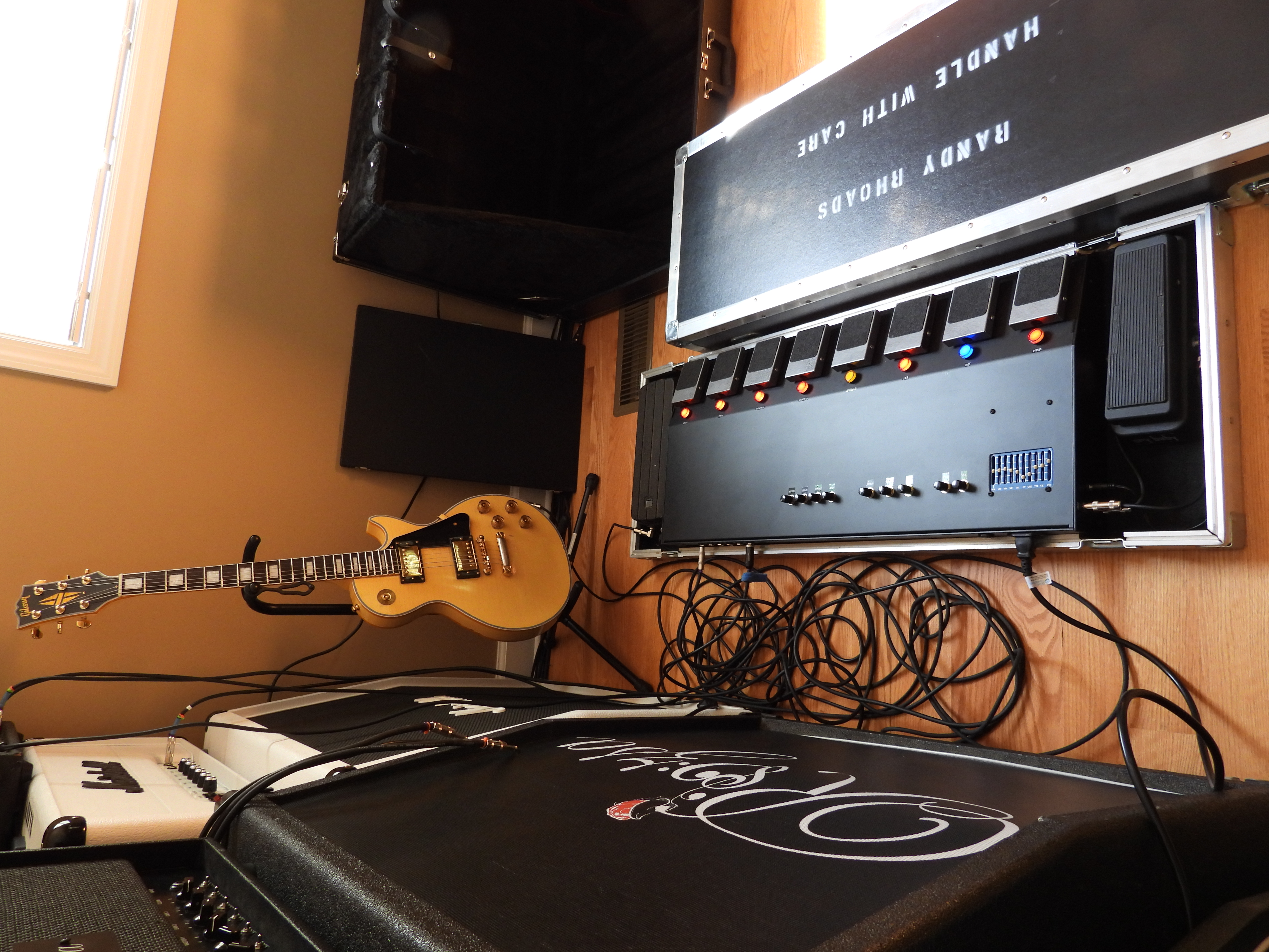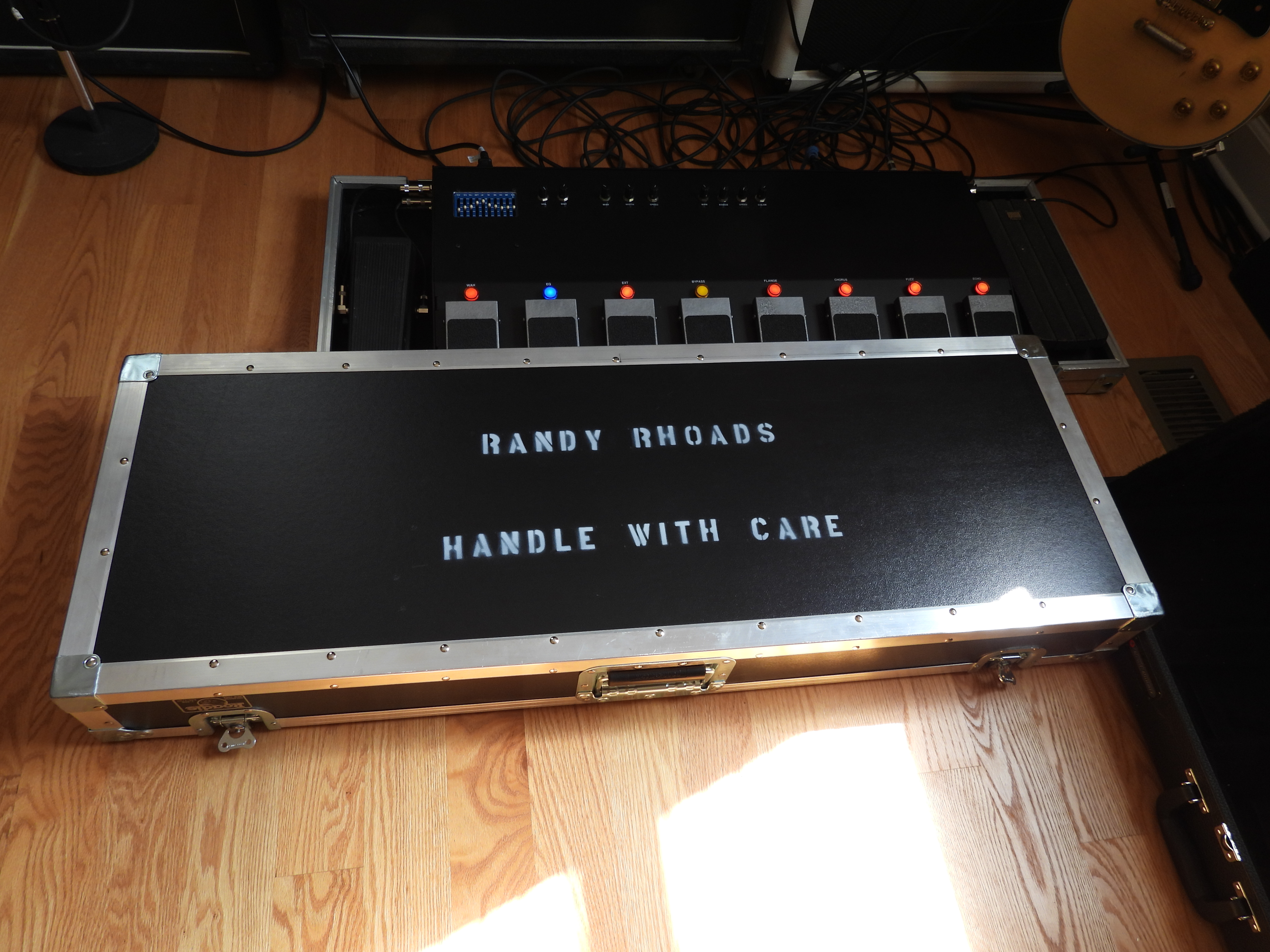 I acquired Randy's LIVE tone gear, all vintage gear (D+, Chorus, Phaser, Volume pedal, etc). and put together THE most exact pedalboard anyone has ever made in 40 years!! I built the pedalboard about 3 years ago, but have tweaked it installing a custom looper unit and with era correct components as the original would have had, correct momentary switches to trigger it, and painted them the appropriate color of gray as well as "RANDY RHOADS" and "HANDLE WITH CARE" on the head, cabinet, and pedalboard roadcase! Yes, cabinet has a complete set of Altec 417-8H Series II, just as Randy used!.....and yes, I am am engineer/tech by trade (as well as a musician)! I did make the head custom and kept the white/black theme (putting Randy on the FRONT of the "tribute" head), but looking to make it likewise exact to Randy's including 1979 JMP metal faceplate and adding his head series number to it...gotta keep the Mojo in the air when playing the system!