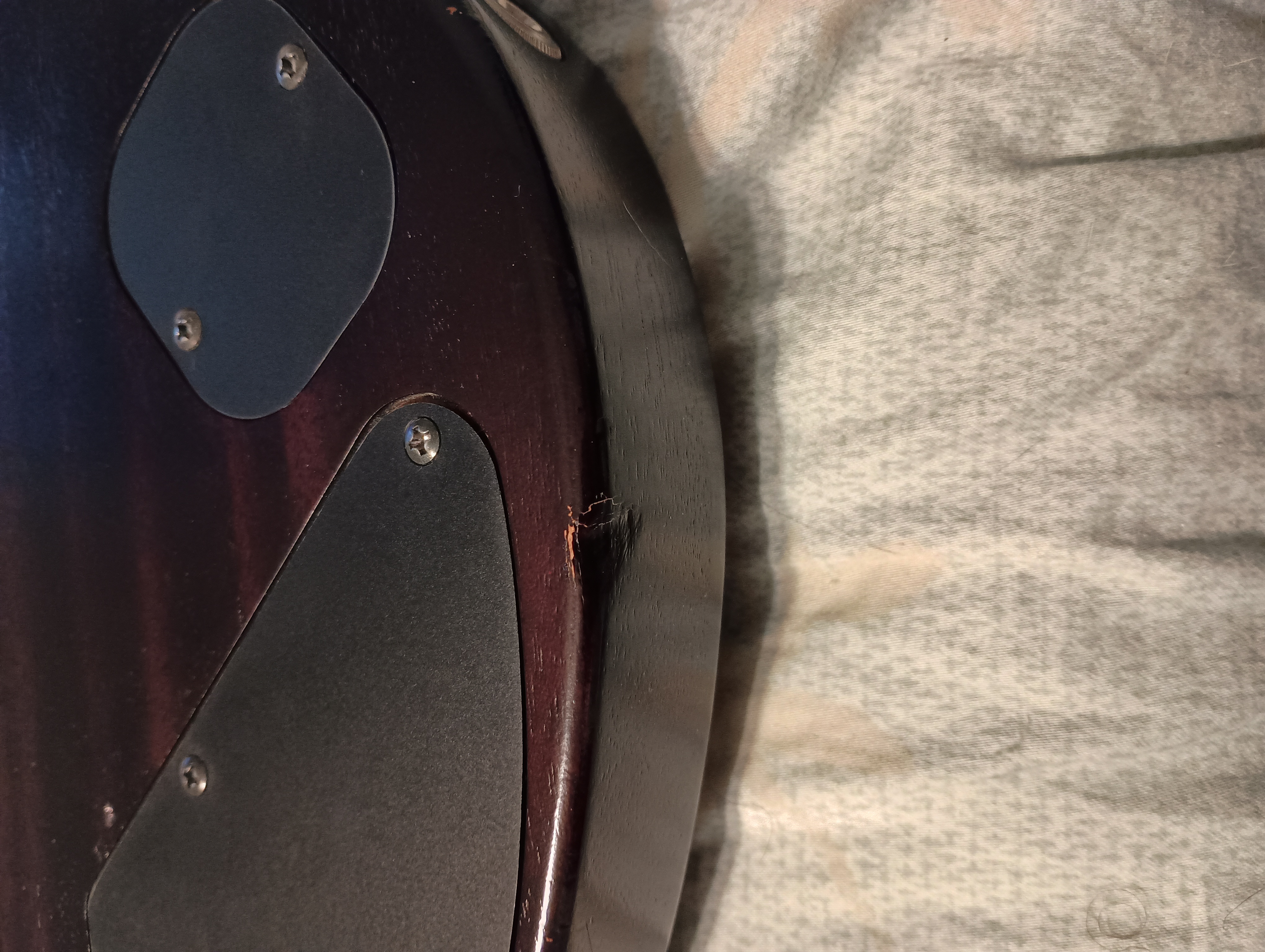 Seriously though sand it down and use wood shaving dust and wood glue to build up the body edge. You may have to play with stains as the glue could cause a color shift.