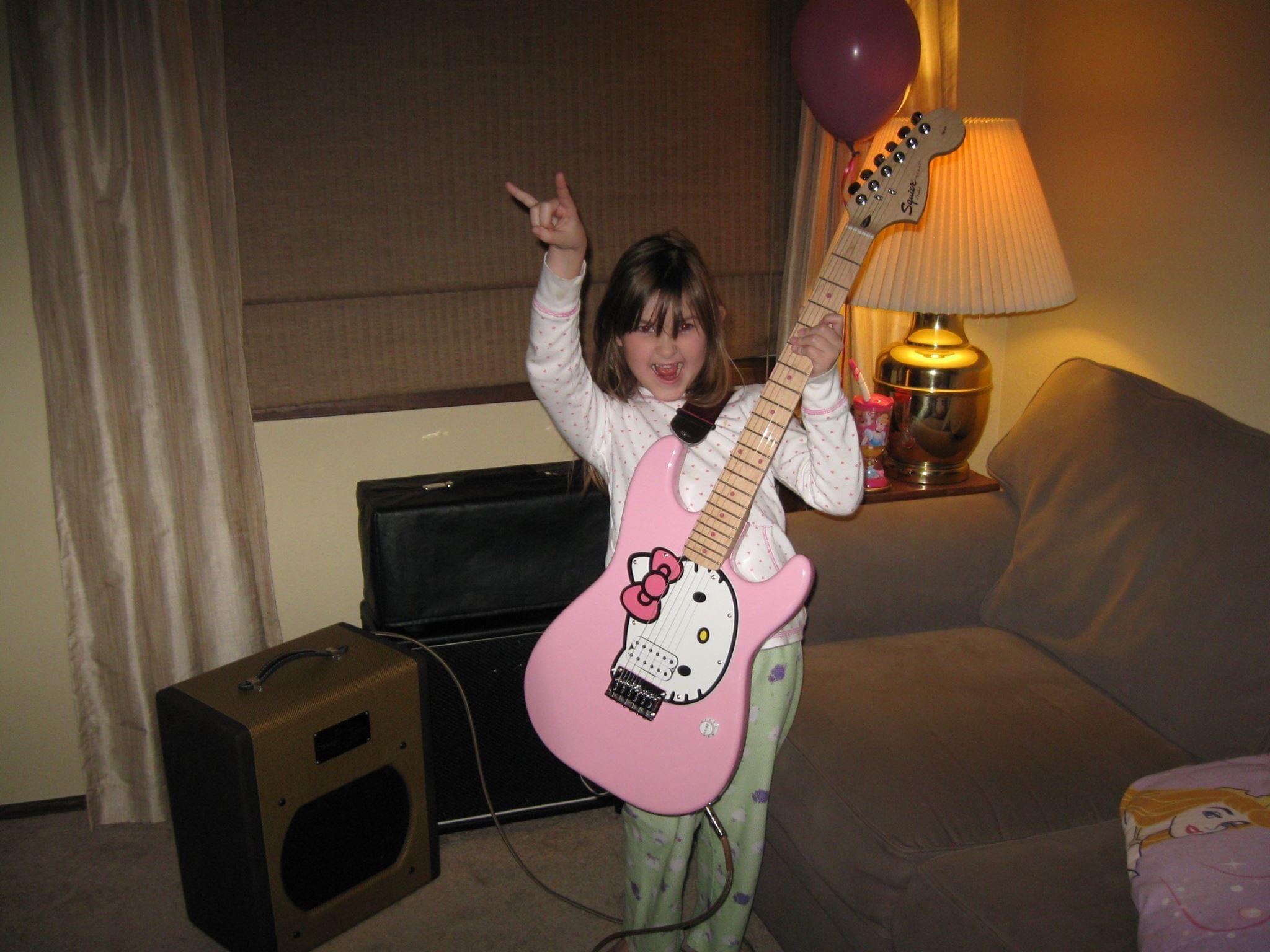 Bwahahahha...imagine my surprise when I looked last week at the current going rate for 1st run Fender Hello Kitty Strats after remembering the one I got for my Daughter for Christmas 2007, same one that's spent its entire life in a case and literally never been played more than 5 minutes. I got it at cost (Like $150) and its now quadrupled in value...She's in college now and I don't dare tell her what its worth, no reason to. Pretty sure this will be the 59' Les Paul of her Generation