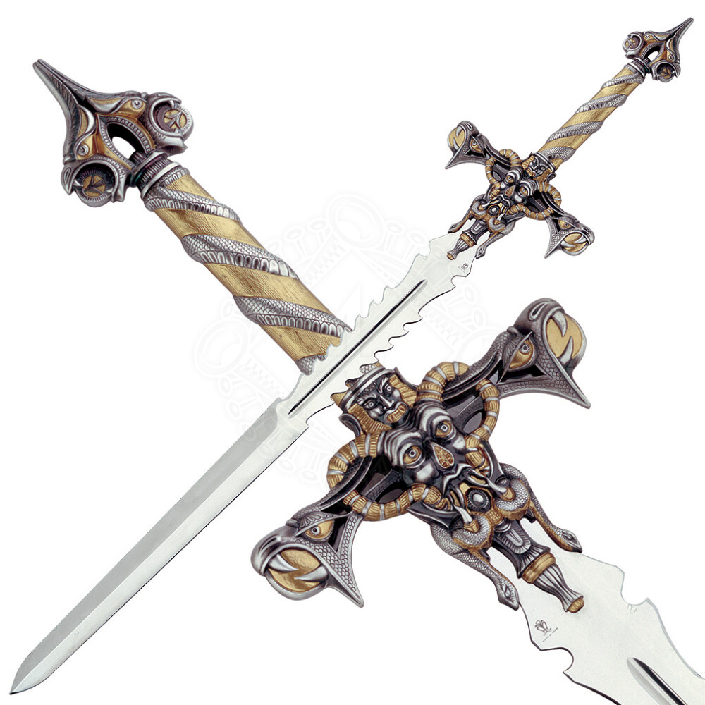I mean it's a cool looking sword, I'd like to have one. One from the real maker though, I've had my share of flea market swords lolThere are a bunch of cheap flea market ripoffs of it. Mine is one of the original ones made by Marto in Spain back in the later '90's. I don't know what their reputation is now, but back then they were considered one of the top modern sword makers. I saved up and bought it as an 18th bday present to myself. It's pretty much a wall hanger, but the metalwork and construction are done well enough to sharpen the blade and use it as a real sword. But yea, it has that goofy fantasy vibe to it.