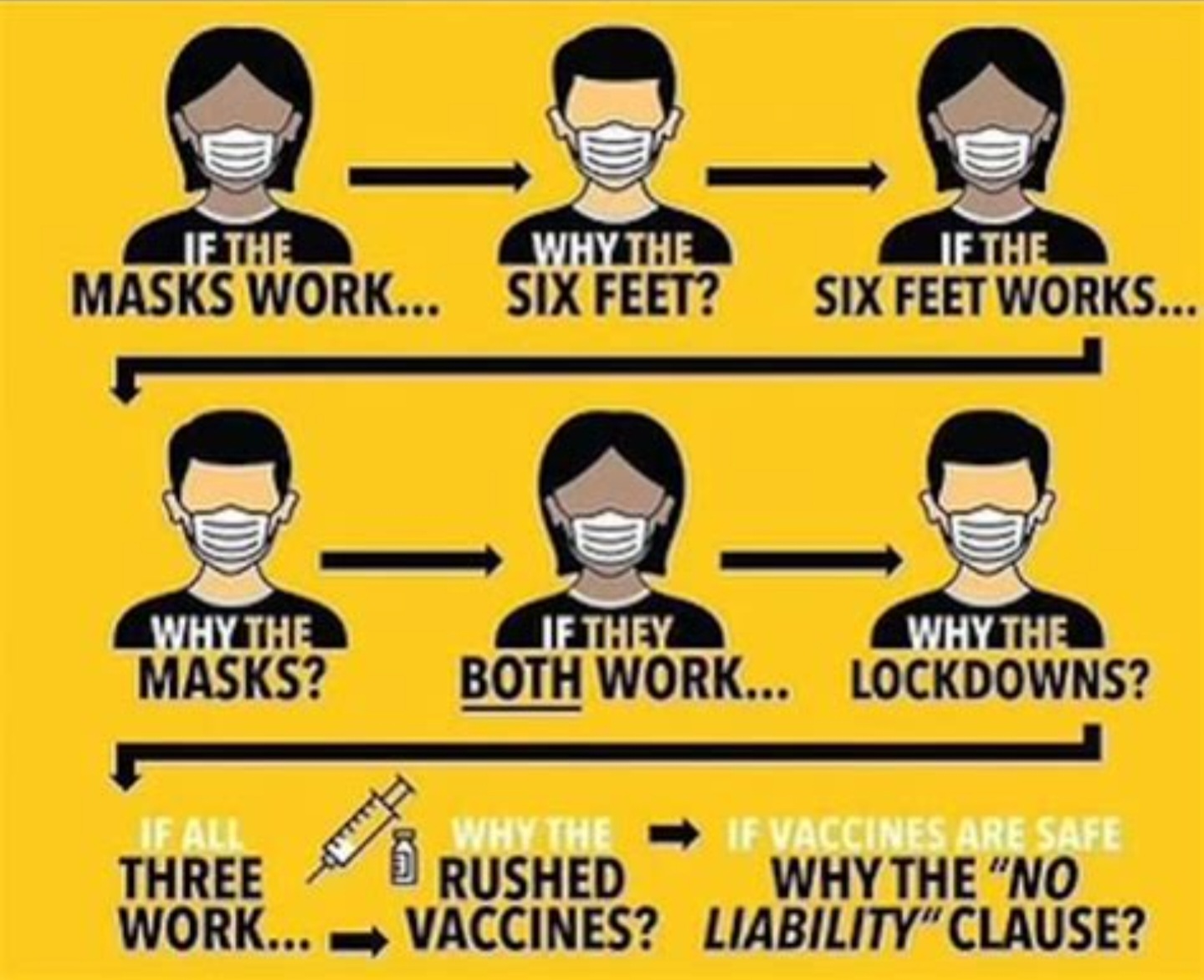 Because none of them work 100%. They all work together nicely if people actually do them.I'll take the bait. Anyone still wearing a mask is real special kind've retard.