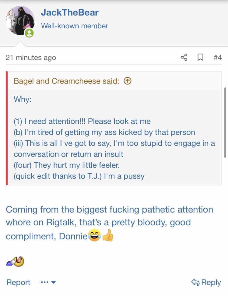 (iii) This is all I've got to say, I'm too stupid to engage in a conversation or return an insult