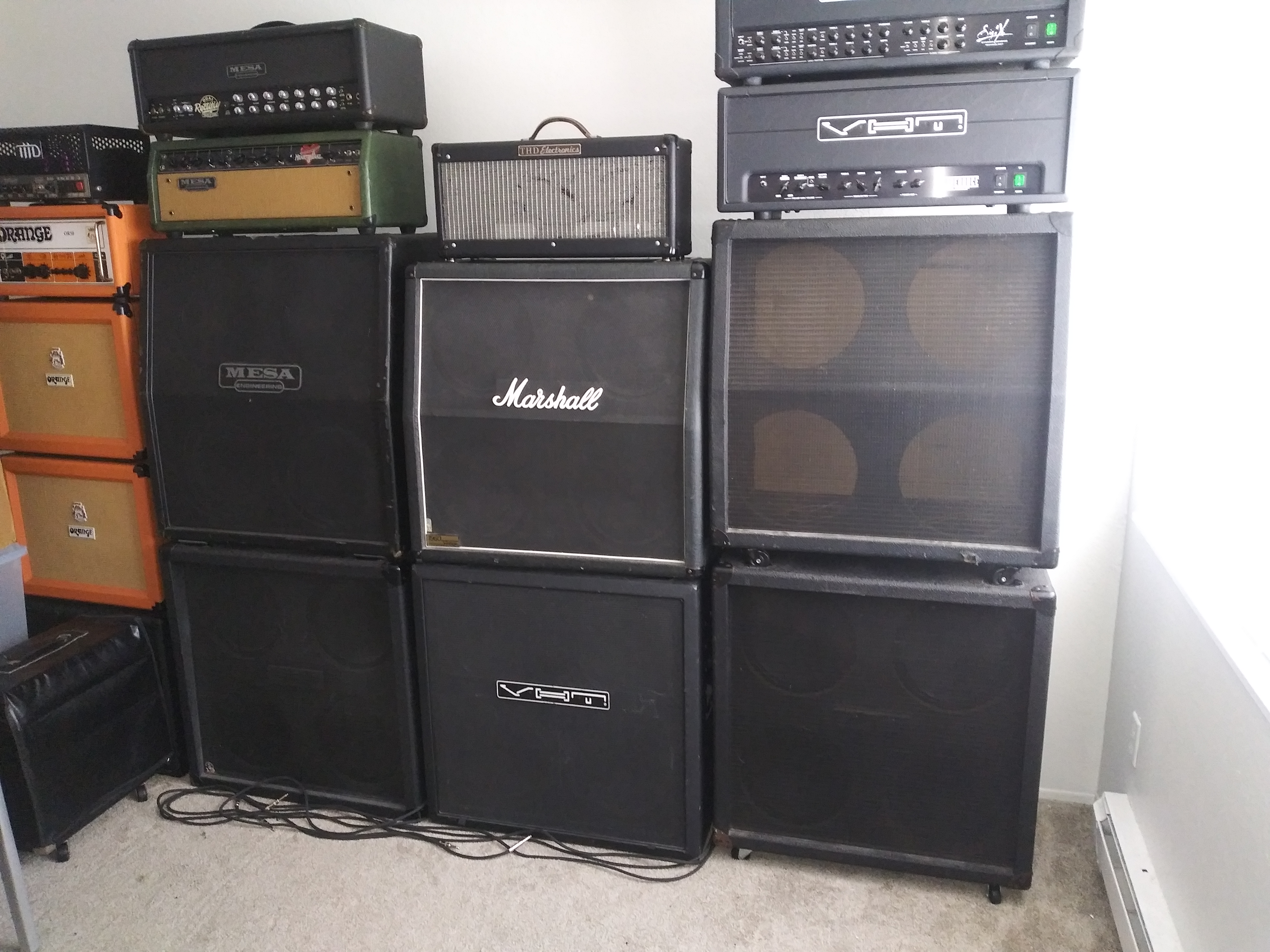 The cab had all the OG basket-stamped V30s which have those amazing mids, but since I was used to my newer 2011 straight-baffle rectifier 412 the older cab always sounded just a little muffled in the treble area, so to me it was an improvement or at least something different to work with.