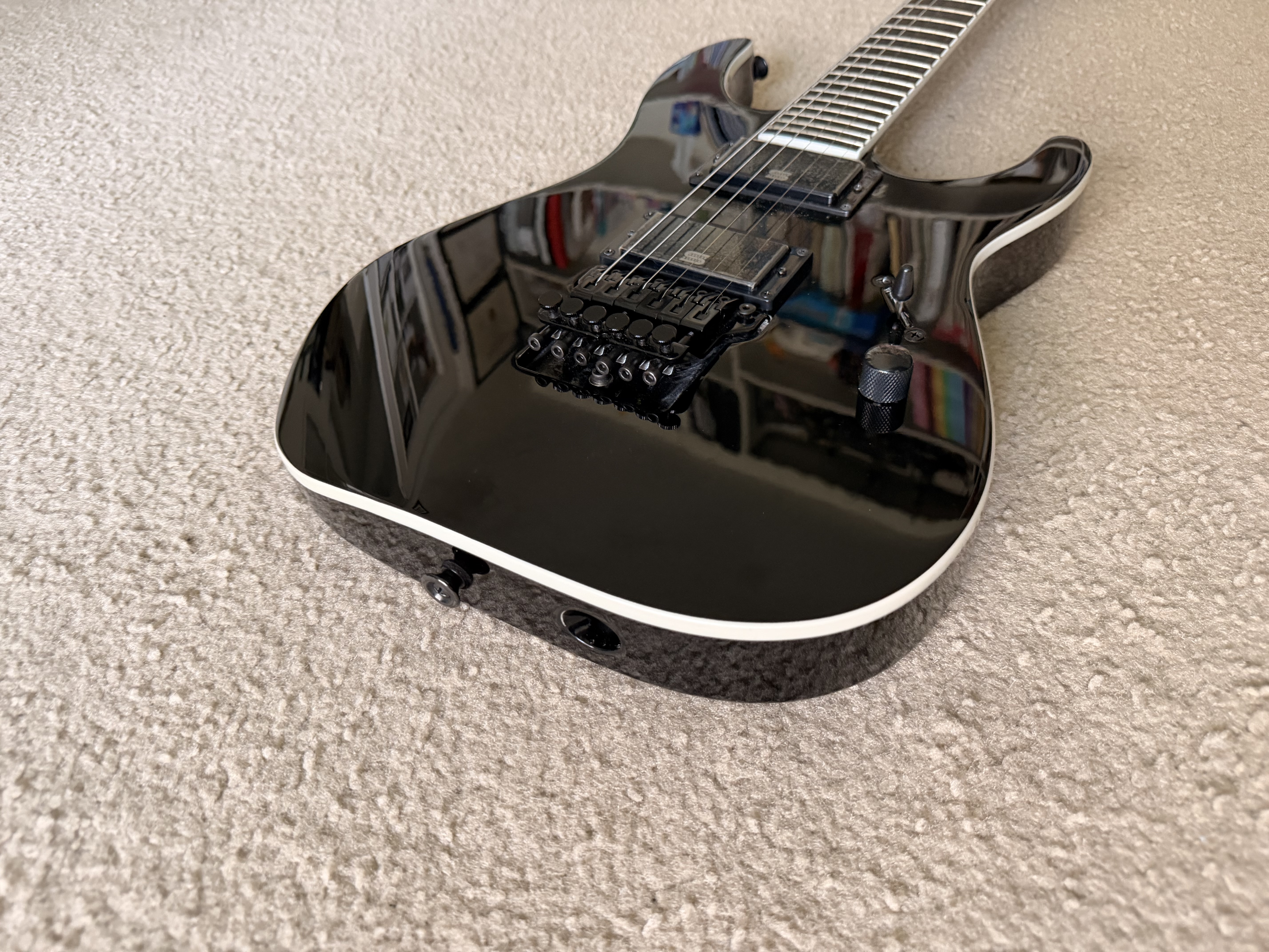 The second guitar (black) is stock and still has the plastic covering the pickups. I might have strummed it once when I got it but never got around to playing or setting it up. Again both are in amazing shape.