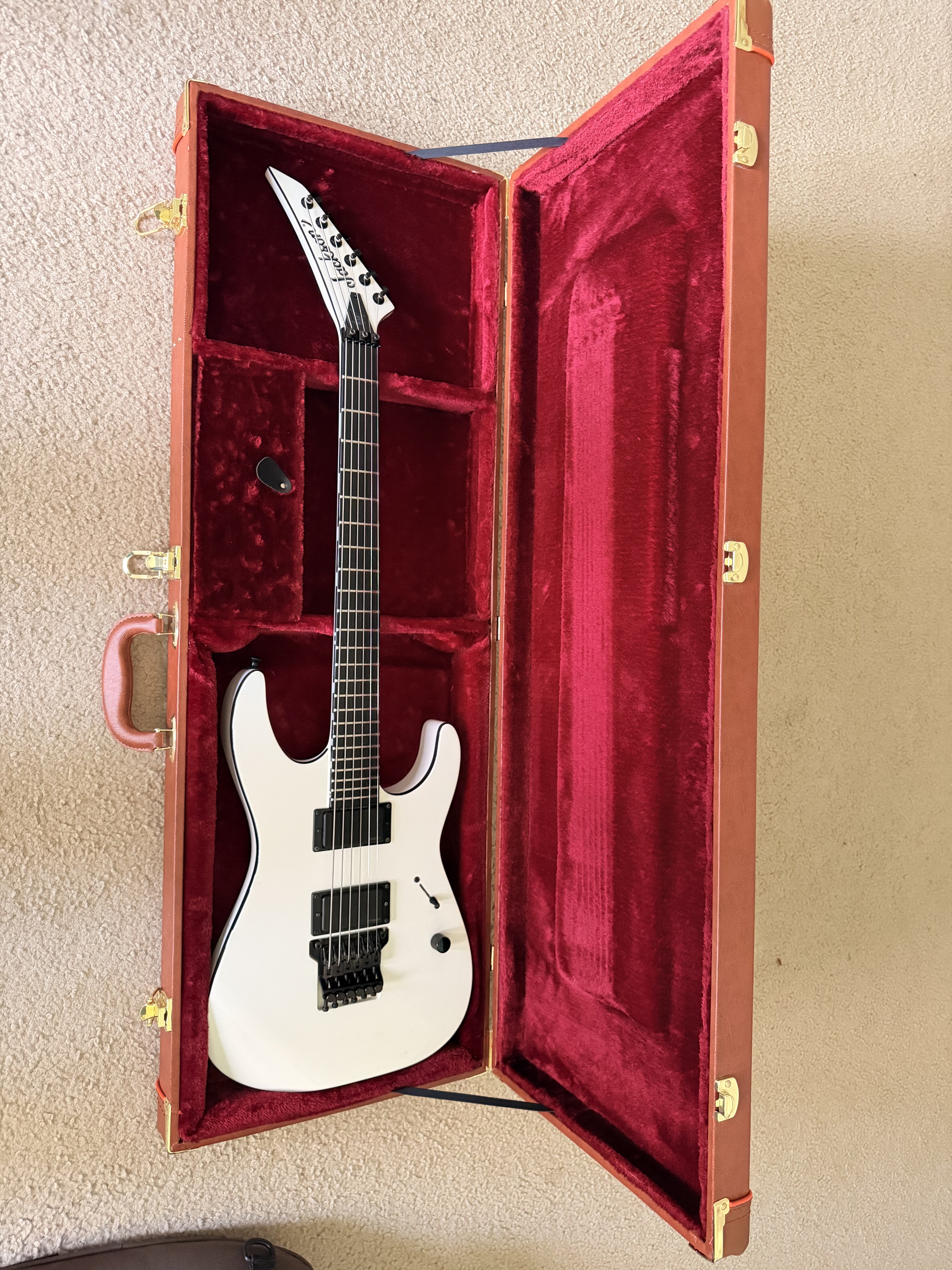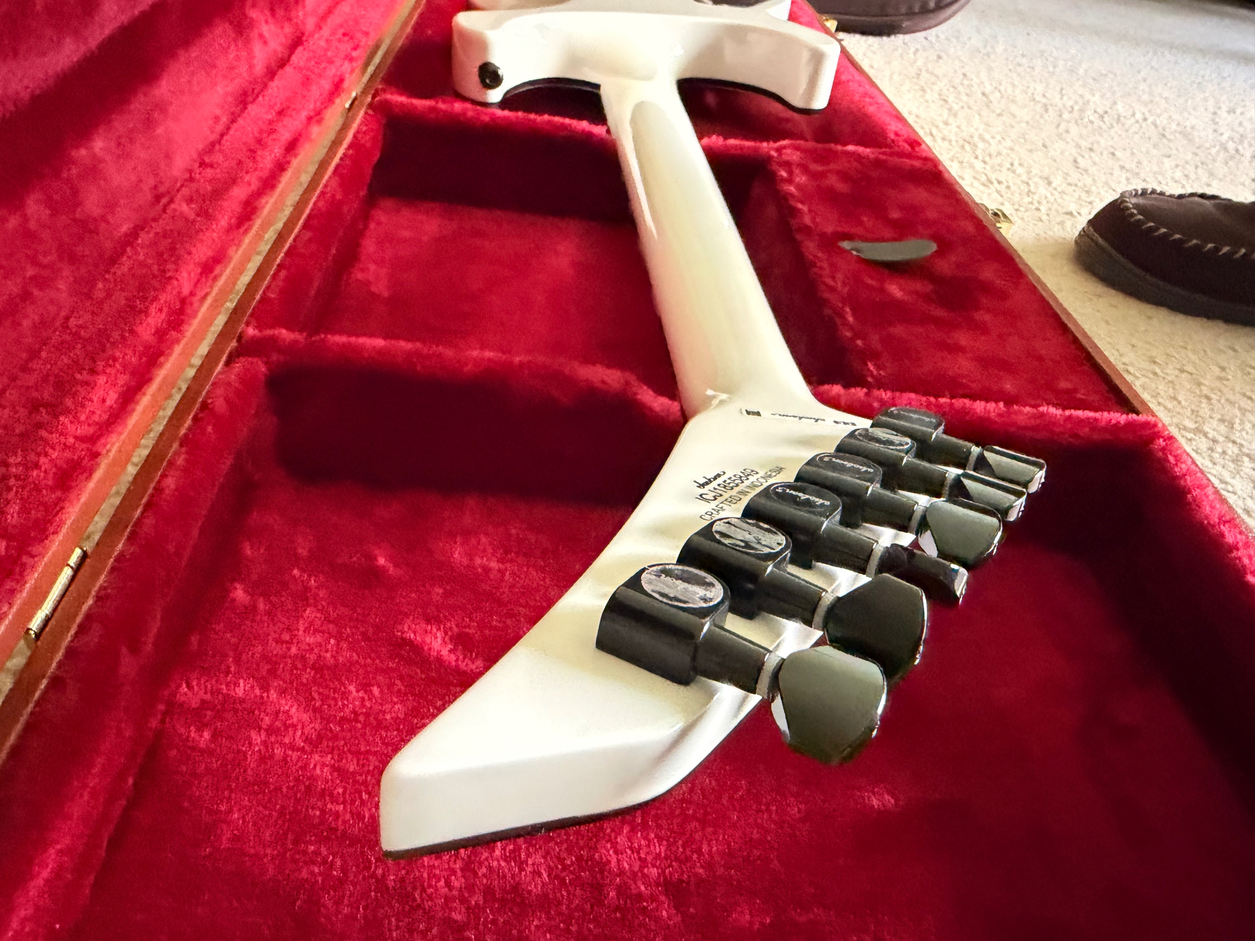 Jackson Pro Series Signature Mick Thomson Soloist SL2 Guitars for sale. White & black. Both in amazing condition. The white model has been upgraded pickups (Fishman Mick Thomson sig) and Dunlop strap locks. The guitar is set up for drop A. Played only a few times!