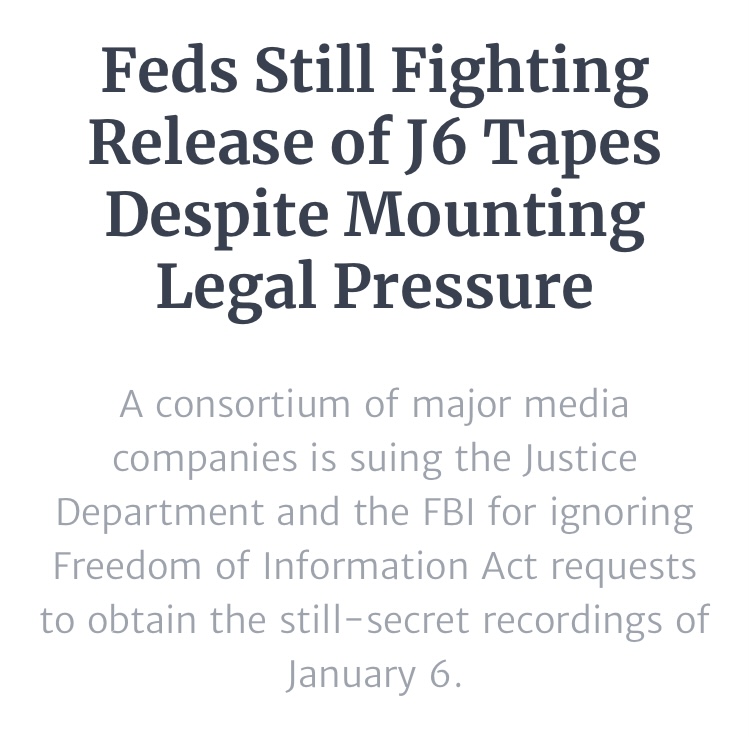 They know if they release all the tapes the whole narrative goes up in smoke.Funny that the feds are fighting so hard against the release of J6 tapes… If it was in fact such a ‘deadly terror’, why would they fight so hard??