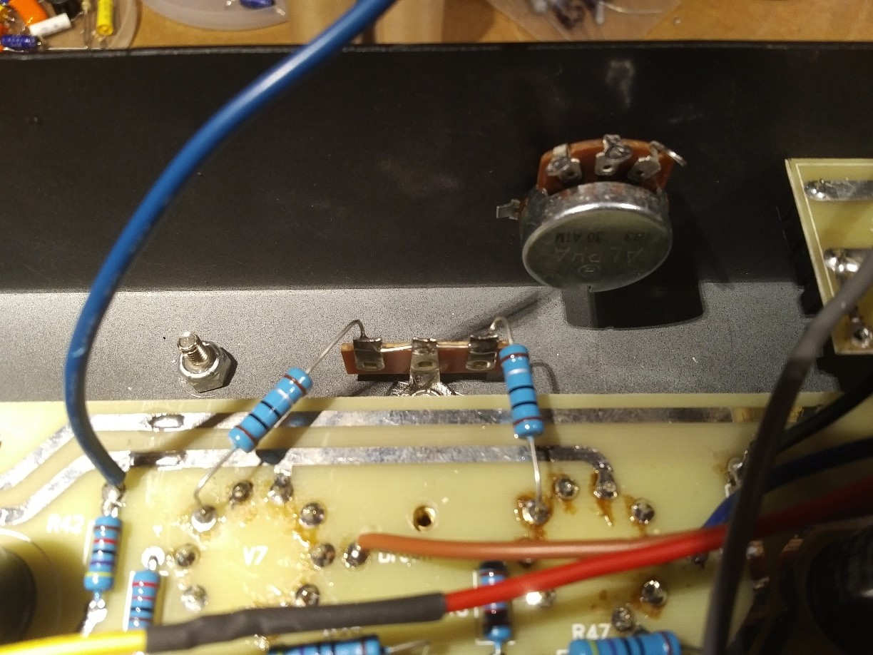 EDIT: It may not be clear in the second pic, but the 2 resistors are connected to the center terminal on the terminal strip, which grounds the cathodes to the chassis. Sand the paint off the chassis under the foot of the terminal strip to ensure a good ground connection, or run a ground wire to a preferred location.