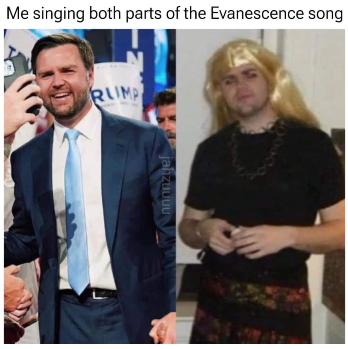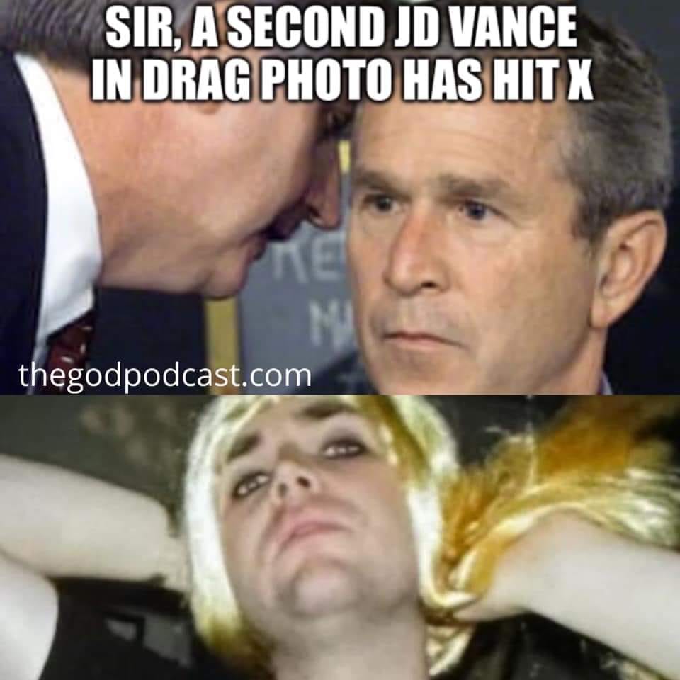 Uh oh, don’t look now but good ole JD is a drag queen. He can’t read to children, how can he be VP ? ? Let’s sit back and watch the OT twist THIS shit up ???